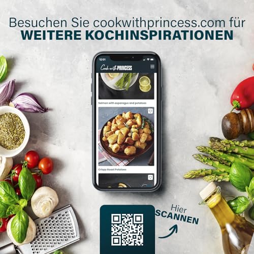 • Sparen Sie bis zu 60 % Energie in Ihrem Haushalt, wenn Sie diese Princess Heißluftfritteuse verwenden. Die Berechnung basiert auf einem Vergleich zwischen einem herkömmlichen 3300-W-Backofen und unserer Heißluftfritteuse. Sie werden nicht nur weniger Energie verbrauchen, sondern Ihr Essen wird auch viel schneller garen. Außerdem haben Sie mit der herausnehmbaren Trennwand die Möglichkeit 2 kleinere verschiedene Portionen oder eine Große zu garen