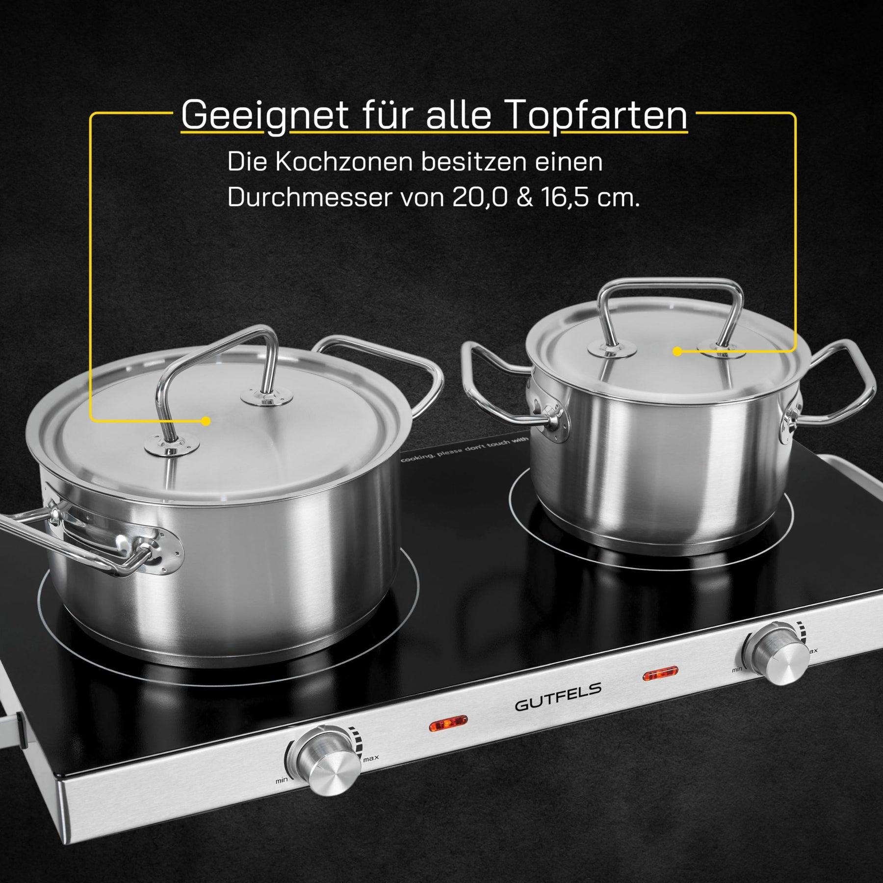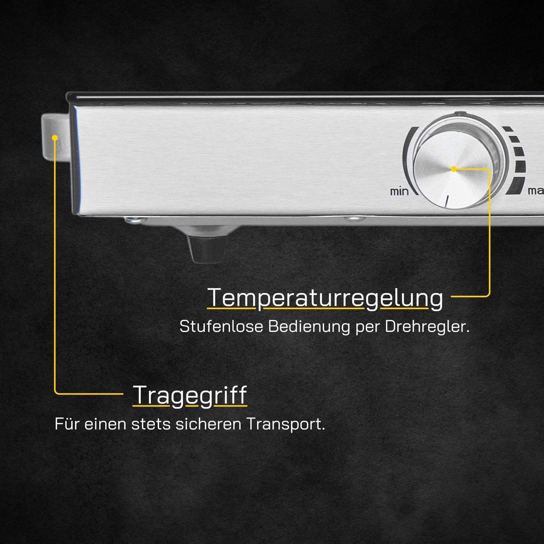 - 𝐏𝐥𝐚𝐭𝐳𝐬𝐩𝐚𝐫𝐞𝐧𝐝𝐞𝐬 𝐃𝐞𝐬𝐢𝐠𝐧: Zwei Platten, ein Gerät. Ideal für kleine Küchen, Camping und mehr. Elektrisch & mobil für kulinarische Abenteuer.