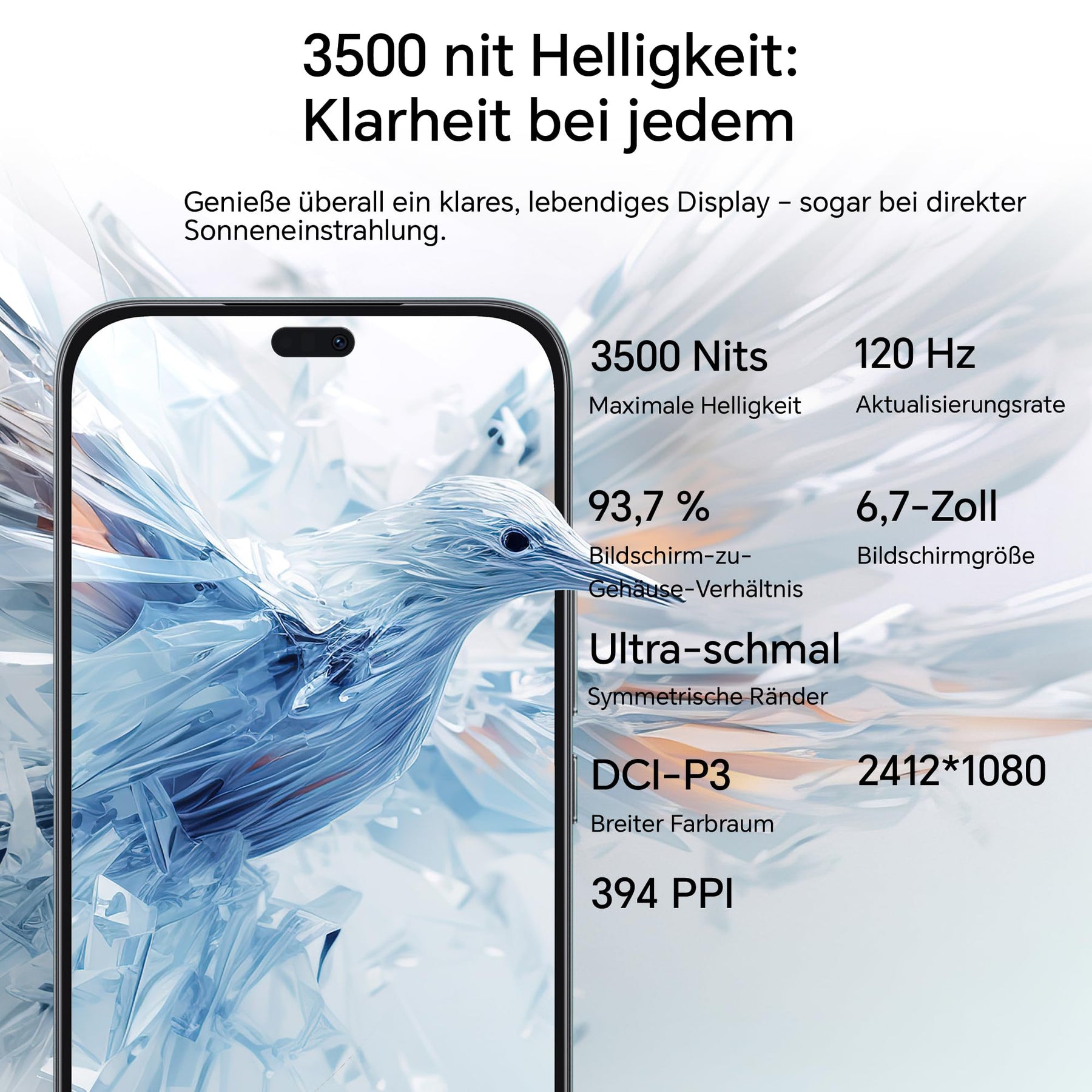 - 【6,7-Zoll-AMOLED-Display und Augenpflege:】 - Eine kinoreife Spitzenhelligkeit von 3500 Nits, eine Bildwiederholfrequenz von 120 Hz und eine PWM-Dimmung von 3840 Hz reduzieren die Belastung der Augen. Ultraschmale Ränder (93,7 % Screen-to-Body) maximieren die Immersion.