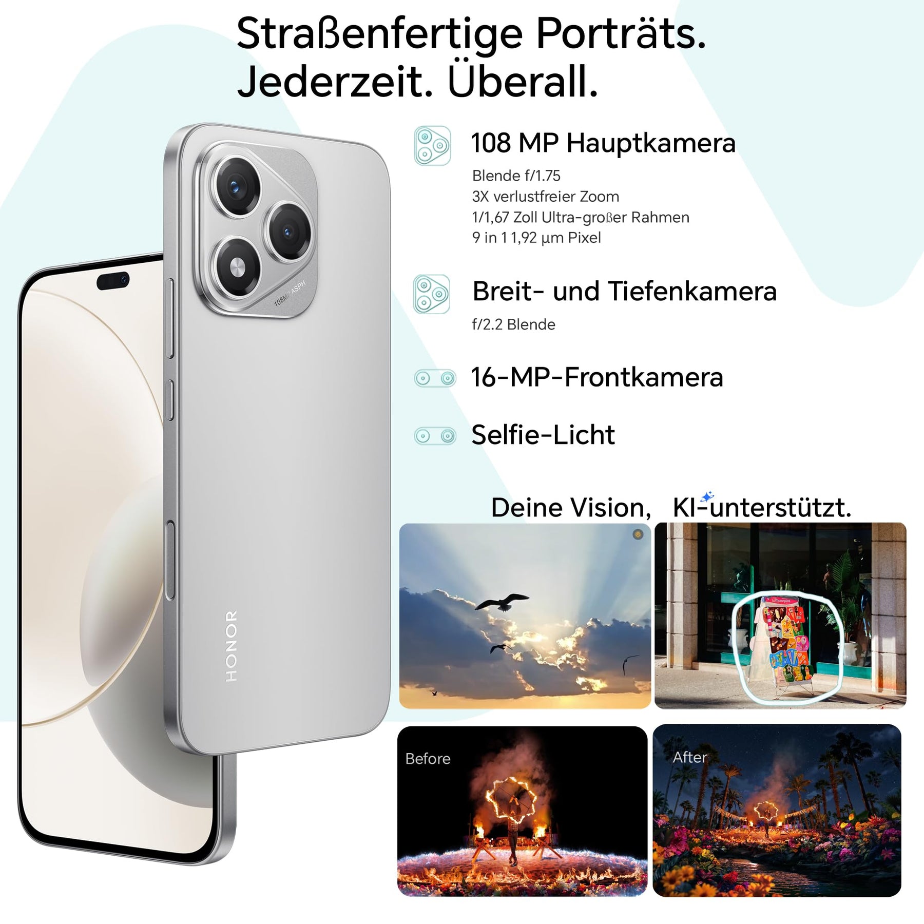 - 【108MP Street-Style Portrait Mastery】 - Der ultrahochauflösende Sensor mit 1/1,67-Zoll-Rahmen und AI Image Engine liefert Straßenfotografie auf Profi-Niveau. Wählen Sie Multifokal-Porträts (1X/2X/3X) und verfeinern Sie Aufnahmen mit AI Eraser oder Outpainting.
