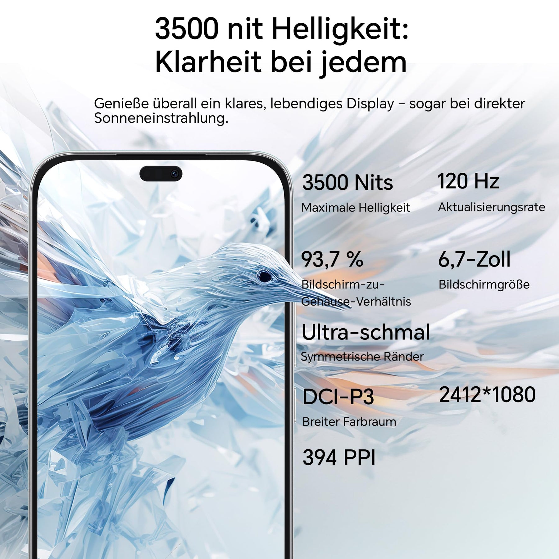 - 【6,7-Zoll-AMOLED-Display und Augenpflege:】 - Eine kinoreife Spitzenhelligkeit von 3500 Nits, eine Bildwiederholfrequenz von 120 Hz und eine PWM-Dimmung von 3840 Hz reduzieren die Belastung der Augen. Ultraschmale Ränder (93,7 % Screen-to-Body) maximieren die Immersion.