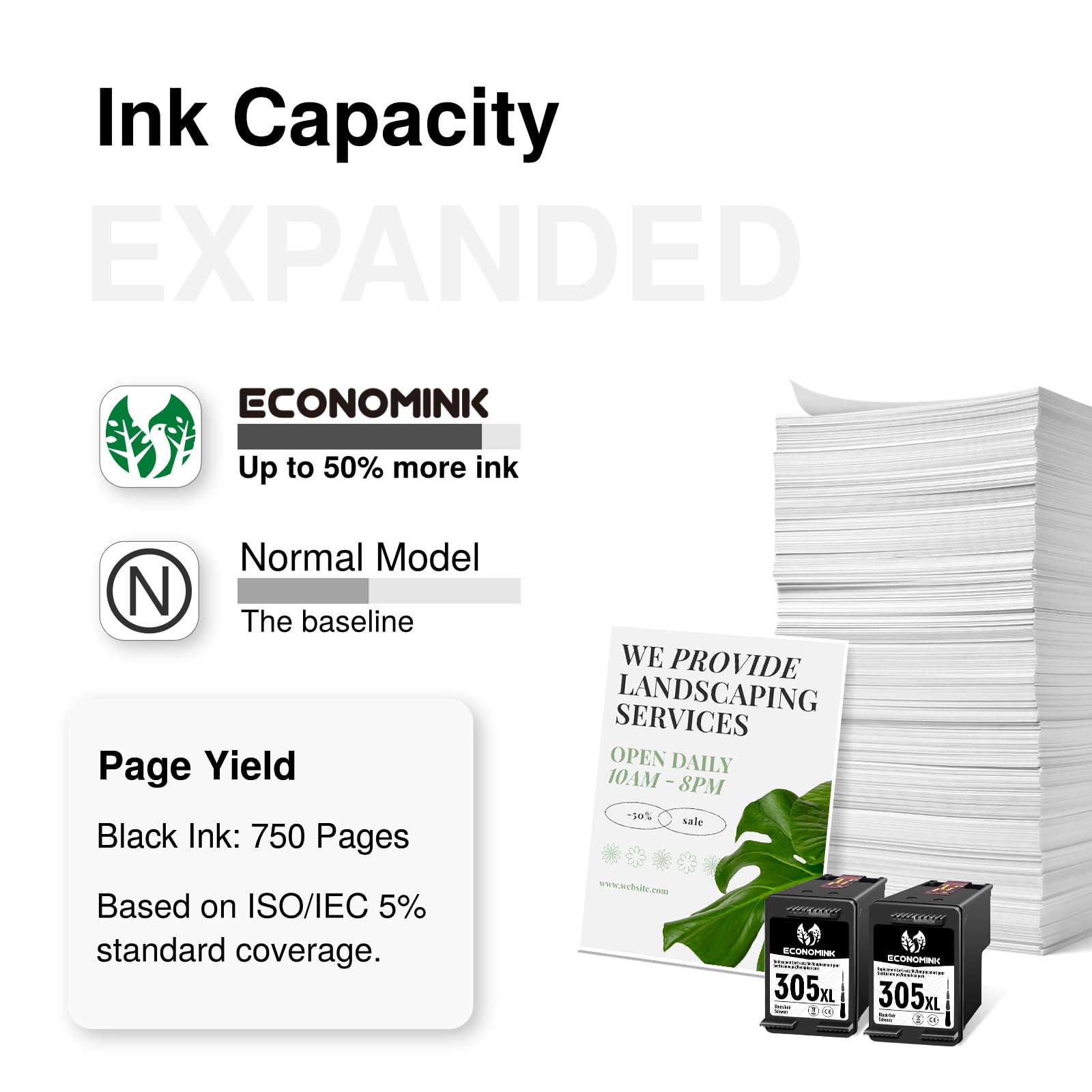 • 【 Größere Kapazität, mehr Seiten】 305XL Kompatibel für hp 305 druckerpatronen schwarz, 750 Seiten für druckerpatronen 305 schwarz bei 5 % Deckung gemäß ISO 24711 zertifiziert im Standardmodus (Die Ergiebigkeit variiert aufgrund von Druckbildern, Einstellungen und Temperaturen erheblich).
