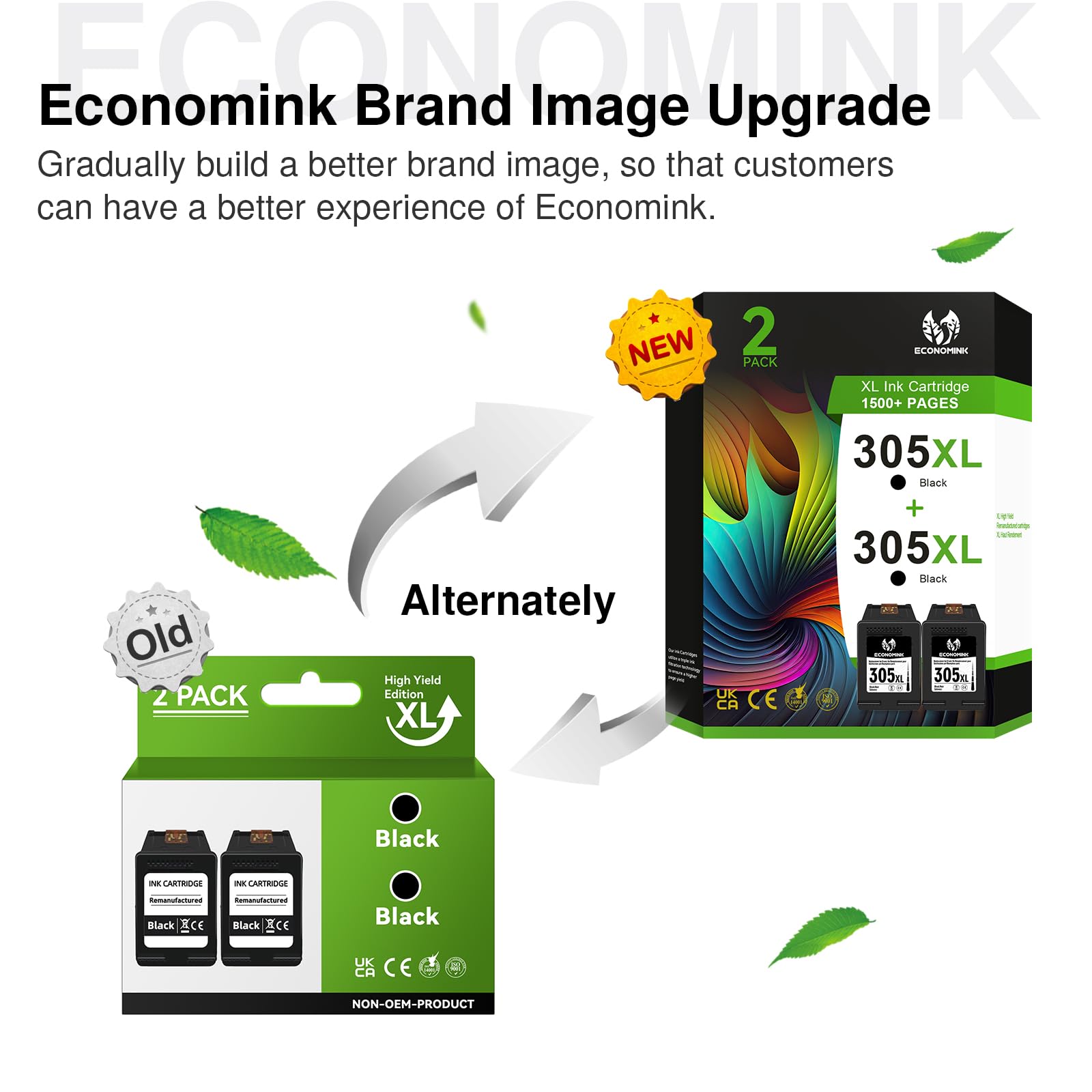 Economink 305XL Schwarz Patronen Kompatibel für HP 305 Druckerpatronen, 305 Schwarz Ersatz für HP Envy 6000 Druckerpatronen für DeskJet 27xx, 41xx, Envy 60xx, 64xx (2er Pack)