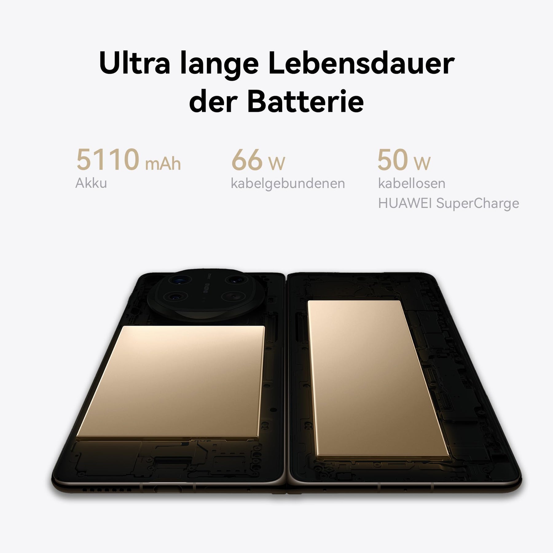 • Dauerhafte Performance:Dank des massiven 5, 110 mAh starken Akkus und dem blitzschnellen 66 W kabelgebundenen oder 50 W kabellosen Laden mit HUAWEI SuperCharge kannst du unbesorgt stundenlang durch die Stadt schlendern oder die Natur genießen und bleibst trotzdem immer erreichbar