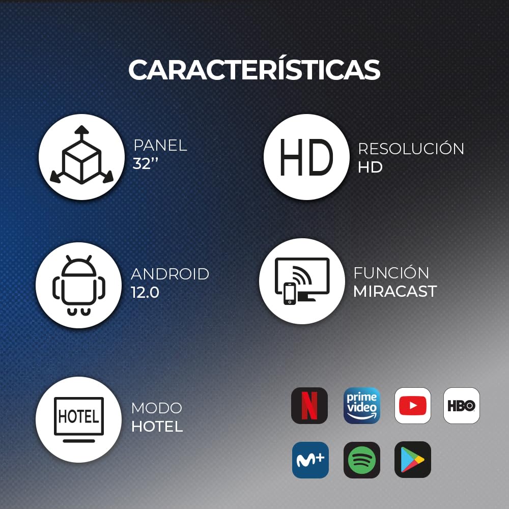 Einzelheiten: LBS: 32-Zoll-LED-Panel, maximale HD-Bildqualität und Energieeffizienz E. Android TV Version 12. 0 und unterstützt DVB-S2/T2 Receiver. Schwarze Ästhetik mit Beinen