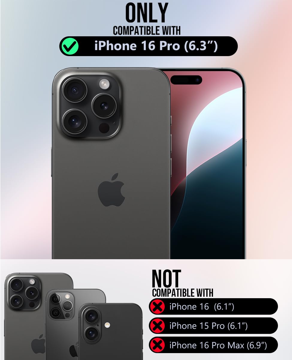 - Kompatibilität: Diese Hülle ist exklusiv für das iPhone 16 Pro (6,3-Zoll-Display, 2024 neu erschienen) gefertigt. Bitte überprüfen Sie vor dem Kauf das Modell Ihres Telefons (Einstellungen – Allgemein – Info – Modellname), um die Kompatibilität sicherzustellen