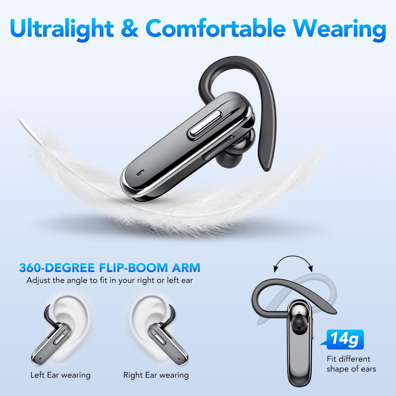 - Bequemes Tragedesign: Unser Headset in ear wiegt nur 14 Gramm. Der Ohrhörerarm aus weichem Gummi kann horizontal um 180° und vertikal um 360° gedreht werden, passend für linkes oder rechtes Ohr. Kommt mit 6 Größen von weichen Ohrstöpseln, Sie können entsprechend Ihrer Gehörgangs Größe wählen und lange Zeit angenehmes Tragen genießen.