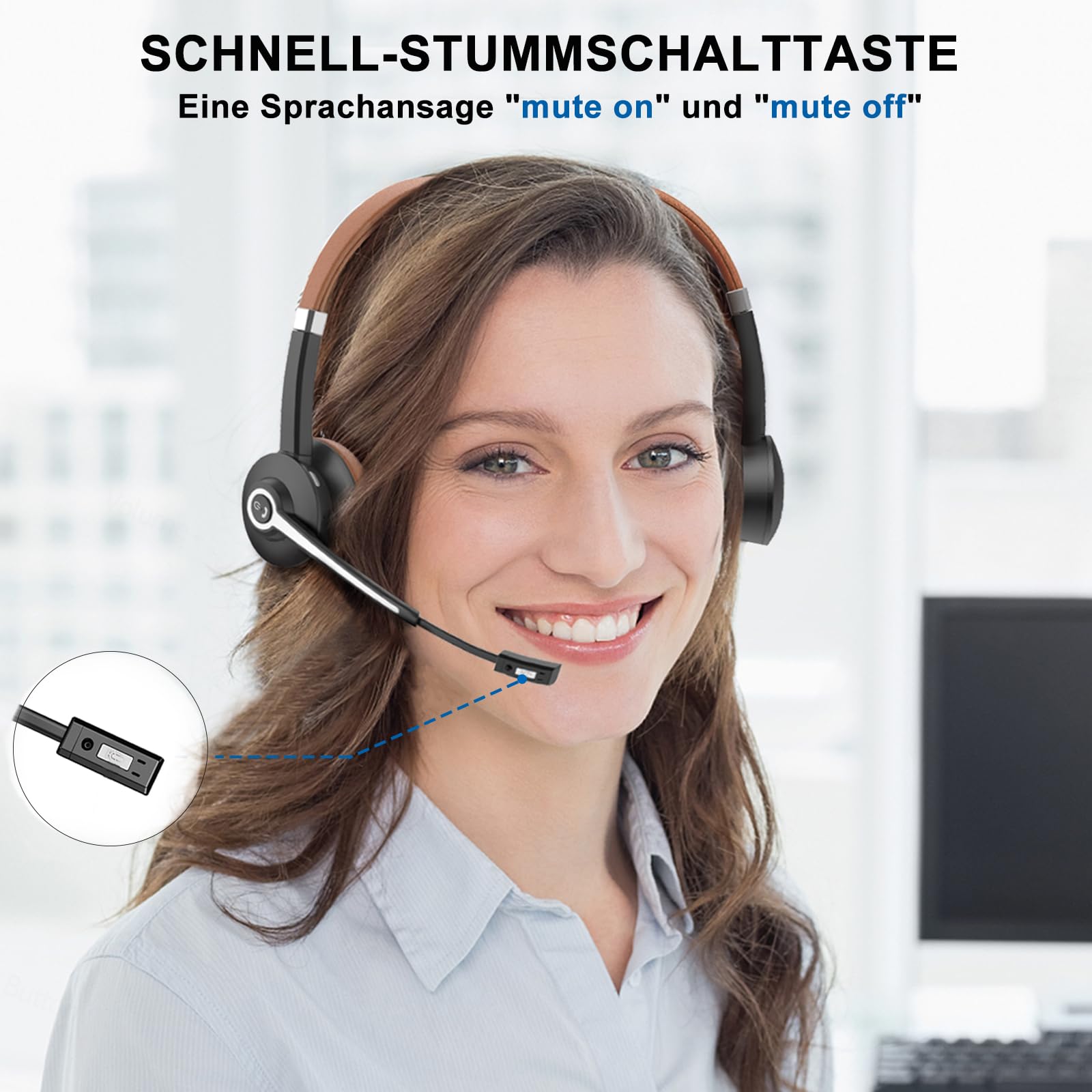 - 【USB-Dongle und Mehrpunktverbindung】Der USB-Dongle (im Lieferumfang enthalten) dieses Bluetooth-Headsets mit Mikrofon bietet eine stabile und schnelle Verbindung ohne Übertragungsverzögerung und eine kabellose Reichweite von bis zu 18 Metern. Mehrpunkt-Verbindungsfunktion kann sich mit 2 Bluetooth-Geräten gleichzeitig verbinden, kompatibel mit Computern, PCs, Laptops, Mobiltelefonen und anderen Bluetooth-Geräten, einfach zwischen zwei Geräten zu wechseln.