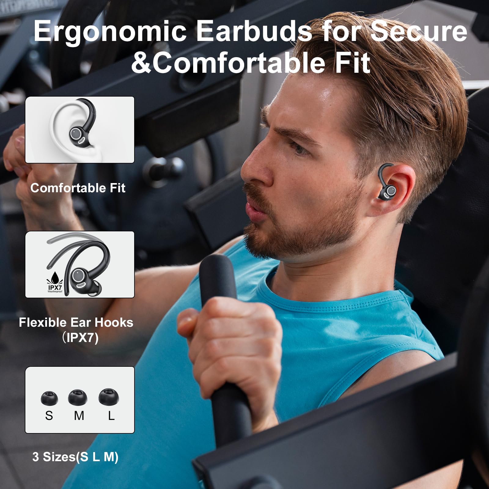 - Ergonomisches Design und Wasserdicht IPX7: Die Kopfhörer Kabellos verfügen über ein ergonomisches Design und weiche Ohrbügel für ein angenehmes Tragegefühl.das die Ermüdung der Ohren minimiert. Die mitgelieferten Silikon-Ohrstöpsel (S/M/L) passen sich perfekt an die Konturen Ihrer Ohren an und sorgen für einen lang anhaltenden Tragekomfort. IPX7 wasserdichte technologie schützt bluetooth kopfhörer sport effizient vor schäden durch schweiß und regen, beste wahl zum laufen, joggen, Yoga.