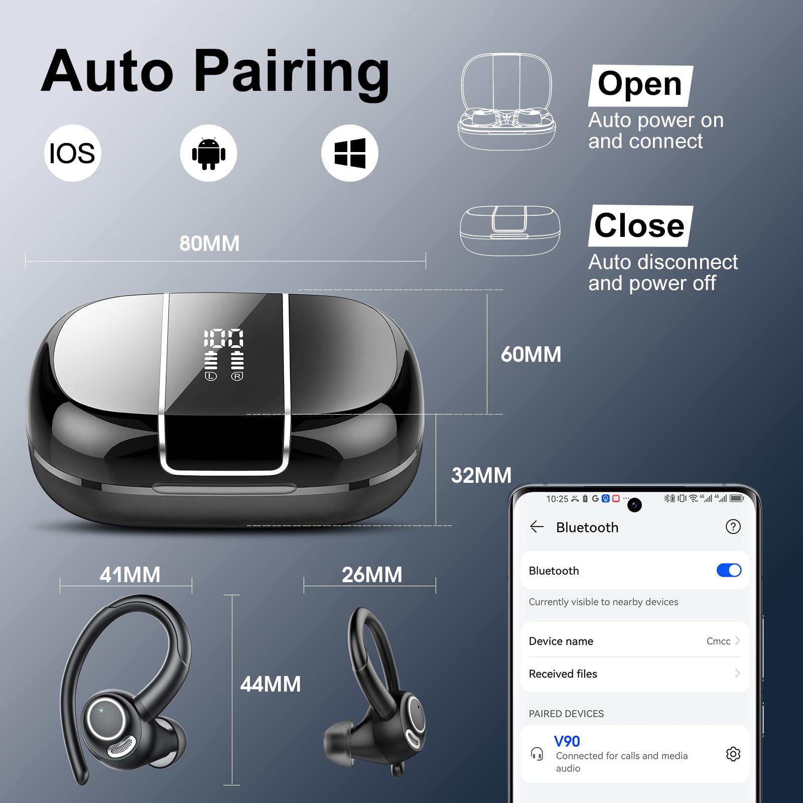 - Bluetooth 5.3 Chip und Ein-Schritt-Pairing: Die V90 Bluetooth kopfhörer verwenden einen Bluetooth 5.3-Chip und unterstützen die Bluetooth-Kommunikationsprotokolle HFP/A2DP/HSP/AVRCP. Dies gewährleistet eine superschnelle und stabile Verbindung sowie ein sorgenfreies, immersives Erlebnis im Umkreis von 15 Metern(in einer offenen Umgebung). Nach der ersten Kopplung verbinden sich die kopfhörer kabellos bluetooth automatisch mit dem zuvor gekoppelten Gerät und bieten nahezu keine Verzögerung.