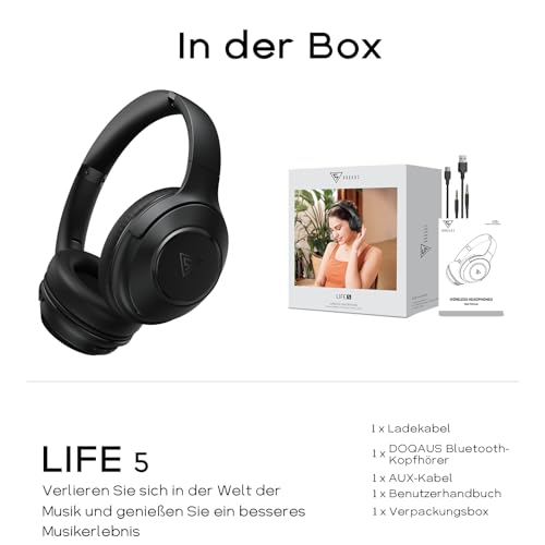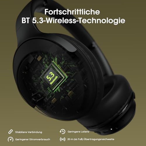 - 【Neueste Bluetooth 5.3-Technologie und eingebautes ENC-Mikrofon】 Die DOQAUS Life5 over ear kopfhörer bluetooth sind mit der neuesten Bluetooth 5.3-Technologie ausgestattet, um Ihnen ein ultimatives kabelloses Erlebnis zu bieten. Diese bluetooth kopfhörer over-ear bieten eine schnellere Übertragungsgeschwindigkeit, eine stärkere Verbindungsstabilität, eine größere Bluetooth-Reichweite (bis zu 20 Meter), eine geringere Latenz und eine bessere Audioausgabe, die Ihnen ein wunderbares Vergnügen bieten. Das eingebaute ENC-Mikrofon mit aktualisierter Signalverarbeitungstechnologie ermöglicht eine klare Sprachaufnahme
