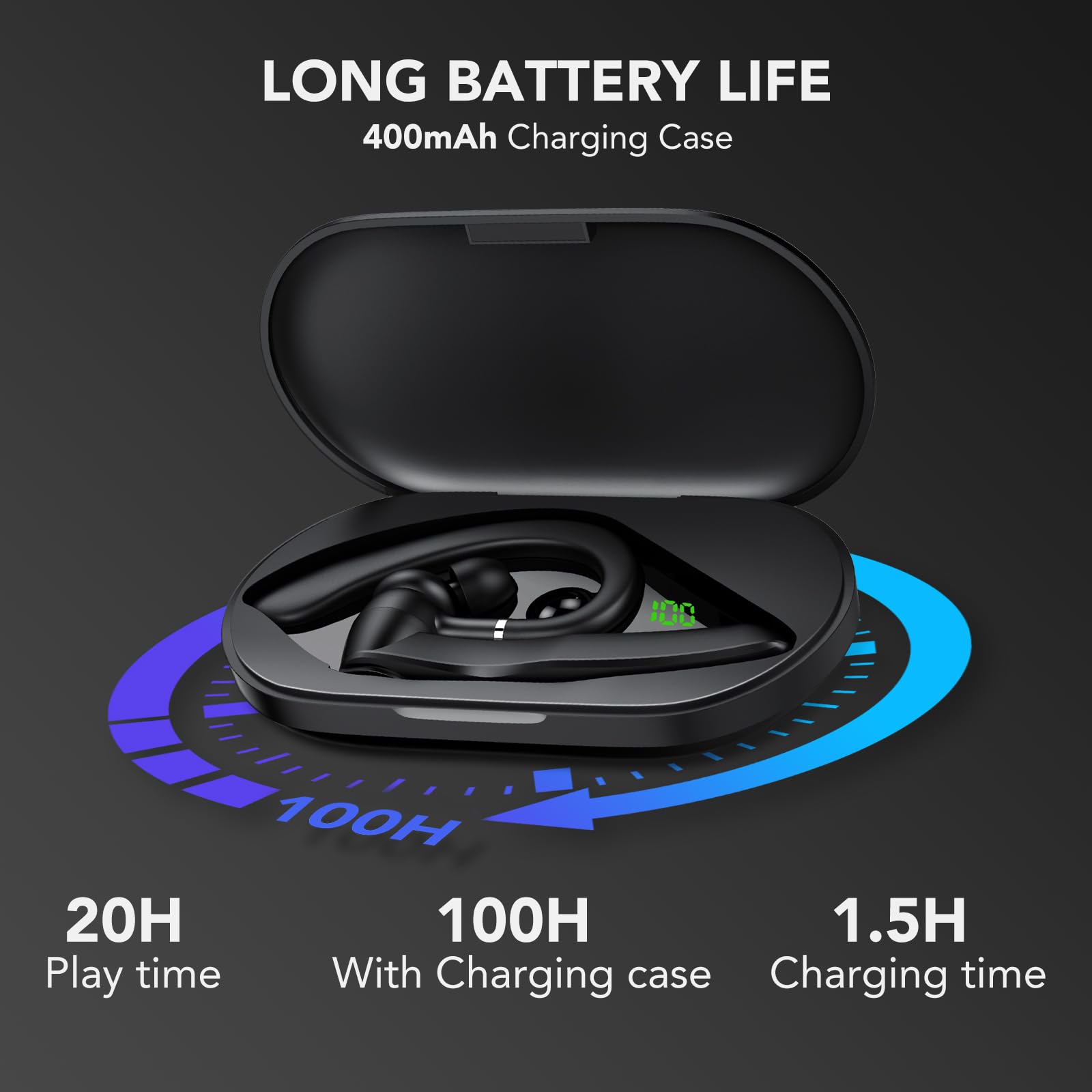 - 100 Stunden Spielzeit: Das bluetooth headset ist mit einer ladeschale mit LED-Anzeige ausgestattet, das headset benötigt nur 1.5 Stunden, um vollständig aufgeladen zu werden und kann bis zu 20 stunden lang funktionieren. Die ladeschale bietet 80 stunden standby-zeit für das headset mit mikrofon