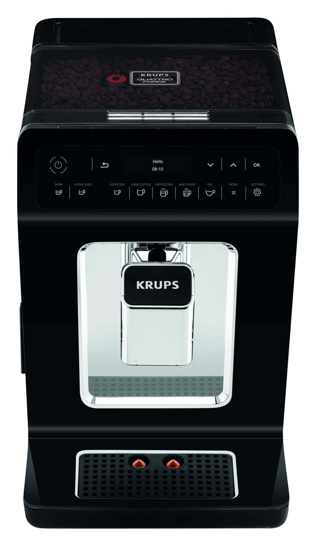 KRUPS EVIDENCE KAFFEEVOLLAUTOMAT: IDEALER ESPRESSO UND CAPPUCCINO BIS ZUM LETZTEN DETAIL Mit größter Sorgfalt und Präzision bis zum letzten Detail bereitet der Krups Evidence Kaffeevollautomat ein unvergleichliches Kaffeeerlebnis aus der Bohne in die Tasse. 15 Getränkespezialitäten, von aromatischem Espresso bis zum ideal ausgewogenem Cappuccino auf Knopfdruck und sogar 3 unterschiedliche Temperaturen für Heißwasser für die Zubereitung von Grünem Tee, Kräutertee und Schwarzen Tee. Verfeinern Sie mit der Direktwahltaste "Extra Shot" jedes Getränk mit einem extra Schuss Espresso für eine zusätzliche Geschmacks- und Energieexplosion, oder mit der weiteren Direktwahltaste "Dark" für die sofortige extra-starke Kaffeeextraktion. Dieser intuitive zu bedienende Kaffeevollautomat bietet mit der Barista Inside Technologie Quattro Force hervorragende Kaffeeergebnisse, die Sie schmecken können. Eine Vielzahl von praktischen Funktionen vereint in Ästhetik die nahtlos in jede Küche passt.