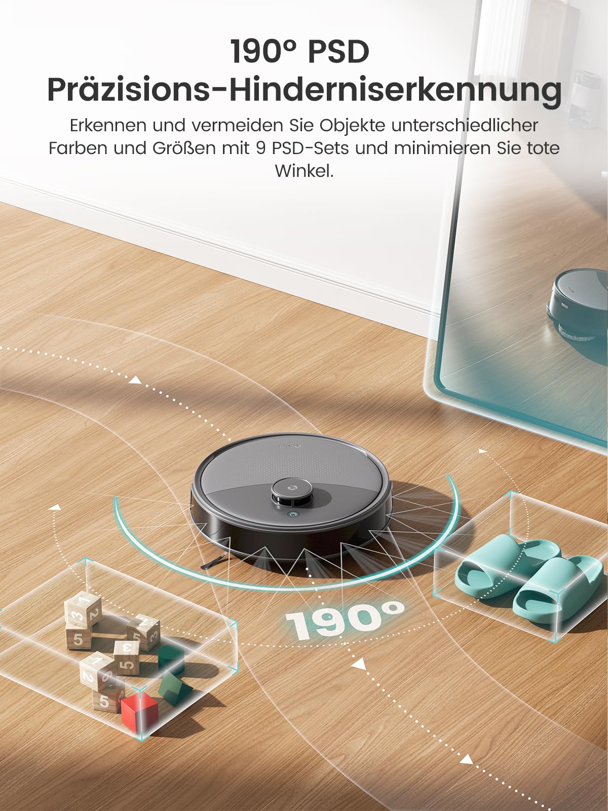 - Intelligente Navigation und Vermeiden von Hindernissen: Der Saugroboter Lefant M3 ist mit einem 360°-dToF-Lasernavigationssystem mit einer Scanreichweite von bis zu 15 Metern ausgestattet und gewährleistet so eine präzise Reinigung auch bei schwachem Licht. Dank der 190°-PSD-Hinderniserkennung erkennt und umfährt der Roboter Hindernisse und Möbel in einem weiten Sichtfeld. Das Freemove 3.0-System sorgt für kollisionsfreien Schutz. Diese fortschrittliche Technologie minimiert das Kollisionsrisiko und gewährleistet eine kontinuierliche und unterbrechungsfreie Reinigung.