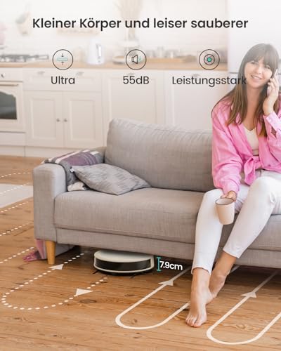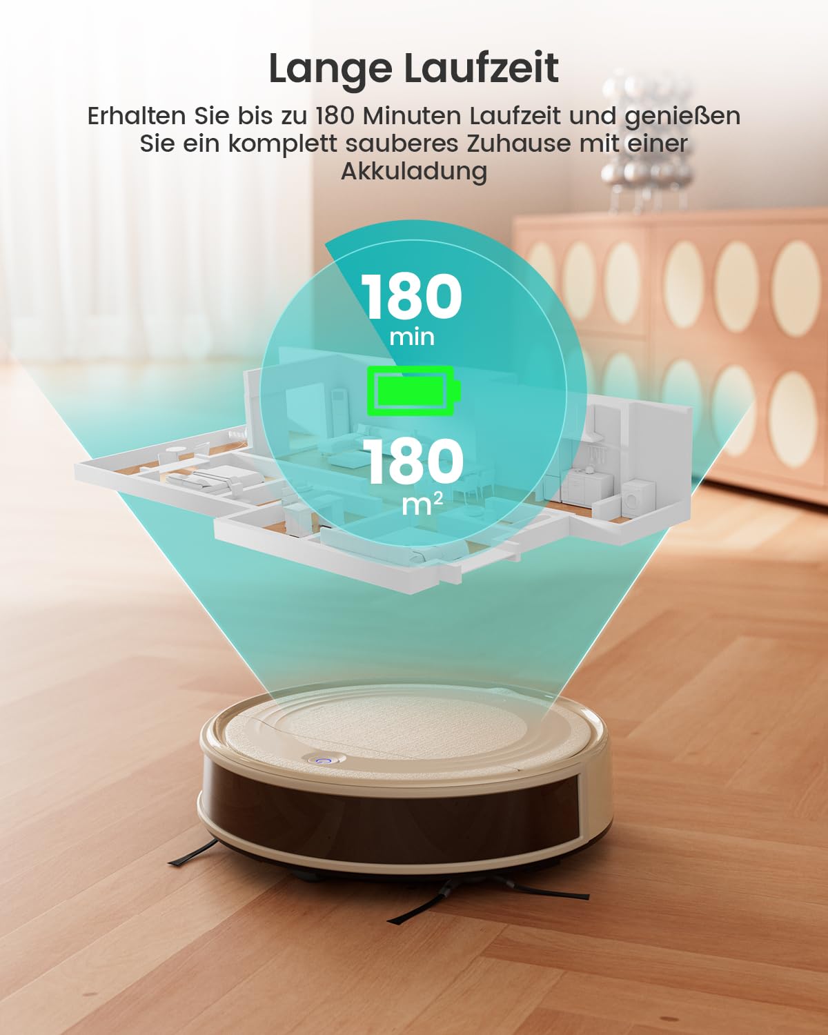 - 【Elegante Eleganz in Champagner und kompaktes Design】 Der champagnerfarbene Saugroboter Lefant M310 hat einen Durchmesser von nur 28 cm und eine Höhe von 7,9 cm. So erreicht er mühelos Stellen unter Sofas, Betten und niedrigen Möbeln. Er sorgt für eine gründliche Reinigung, ohne viel Platz zu beanspruchen oder die Ästhetik zu beeinträchtigen.