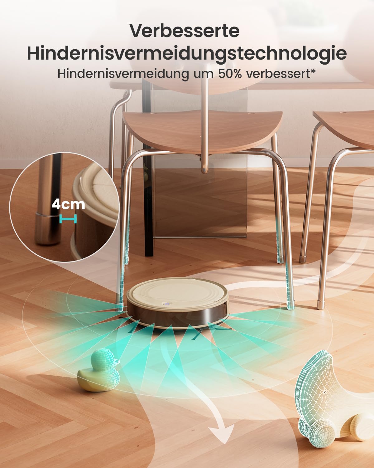 - 【Intelligente Hindernisvermeidung】 Der Saugroboter LEFANT M310 ist mit Antikollisions- und Absturzsensoren ausgestattet, die Hindernisse wie Treppen und Möbel erkennen und so Zusammenstöße und Stürze verhindern. Er eignet sich ideal für Hartböden, Kurzflorteppiche und Haushalte mit Haustieren und sorgt für eine sichere und gründliche Reinigung in jedem Raum.