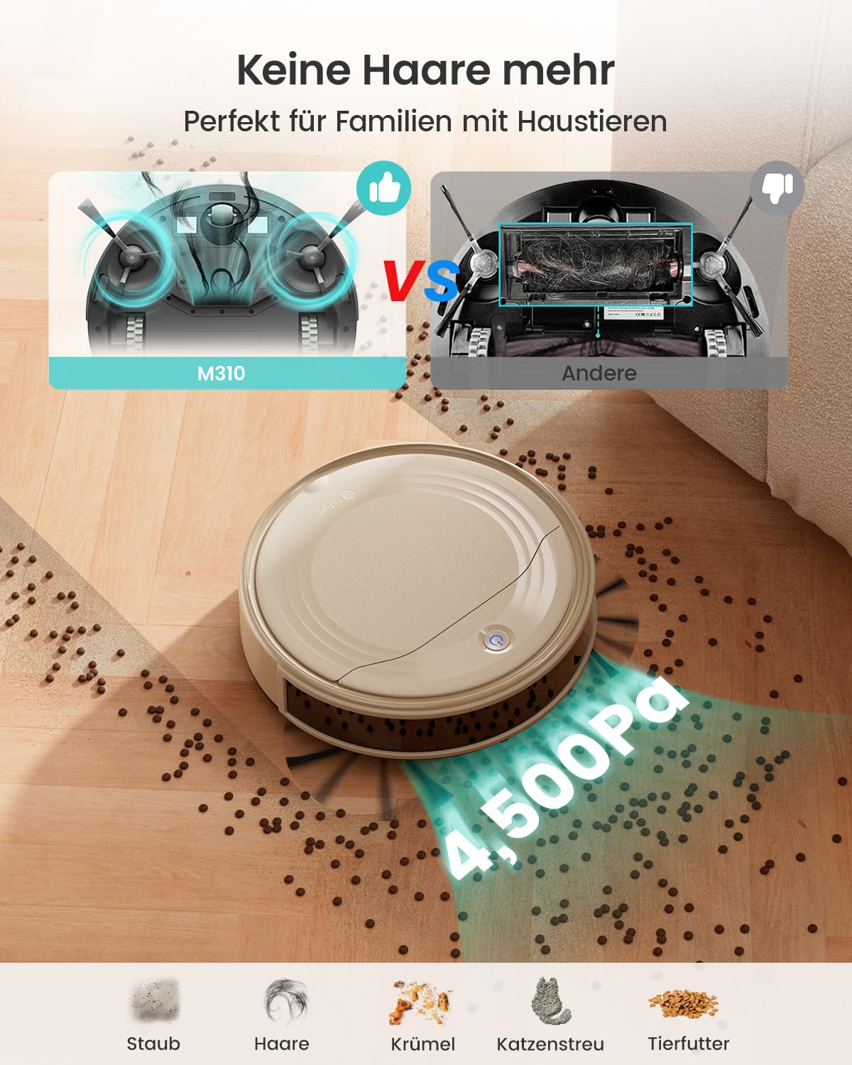 - [Die ideale Wahl für Tierliebhaber] Der LEFANT M310 Saugroboter entfernt mühelos Tierhaare und Schmutz. Dieser leise, effiziente und elegante Saugroboter vereint Technologie und Design und sorgt so jederzeit für ein sauberes Zuhause.