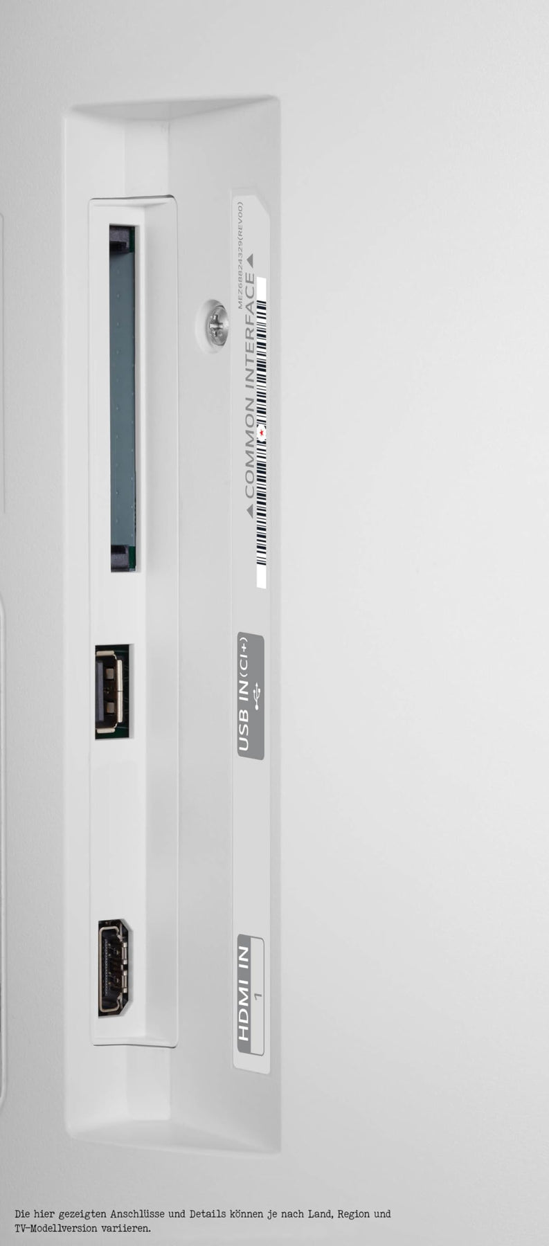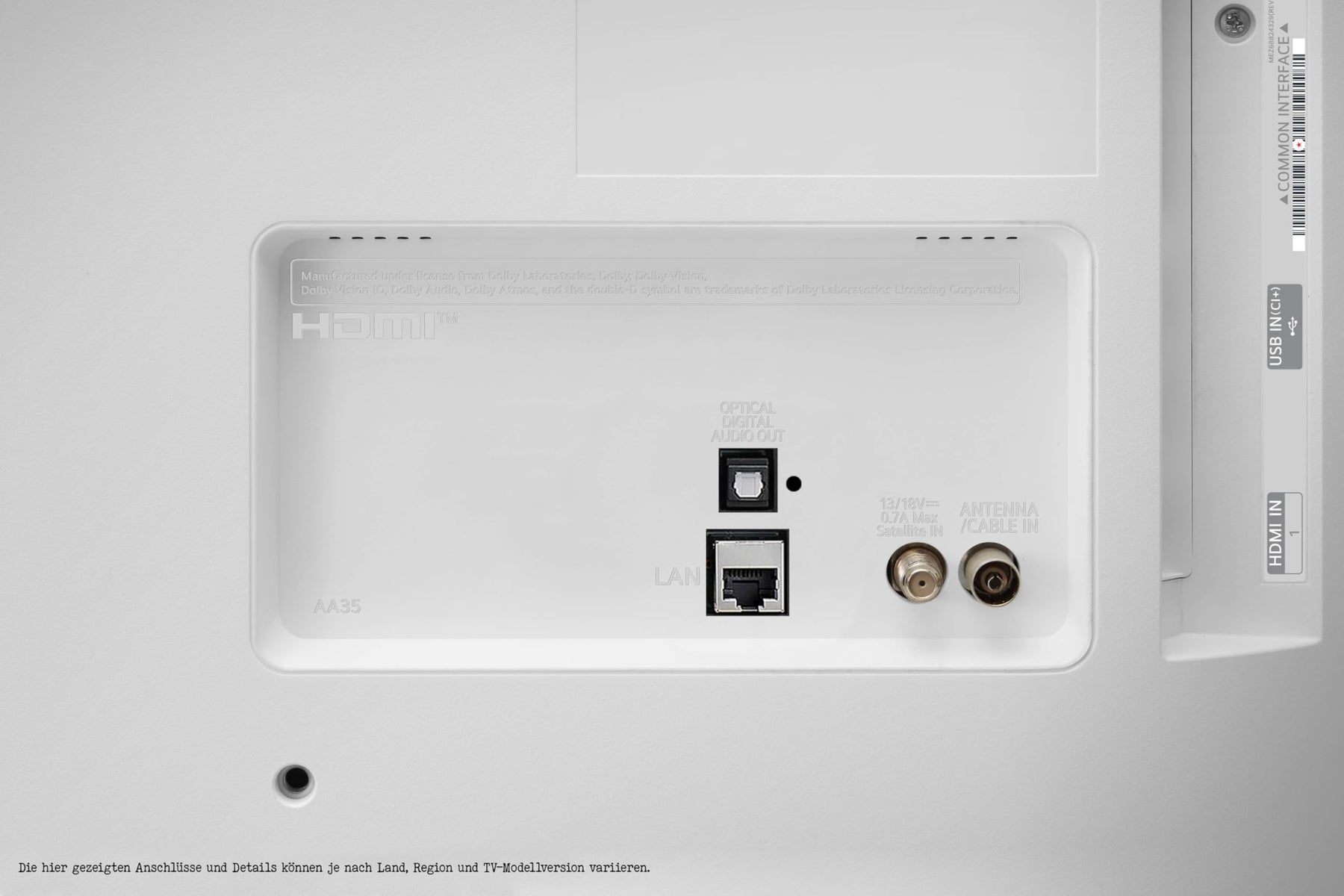 • Tunertyp und Konnektivität: Single Triple Tuner (DVB-T2/-C/-S2) mit USB-Aufnahme, LAN (Ethernet), WLAN (802.11ac), Bluetooth 5.0, 2x HDMI 1.4 (mit eARC und LG SIMPLINK), 1x USB, Optischer Digitalausgang (S/PDIF, Lichtwellenleiter), CI+-Slot