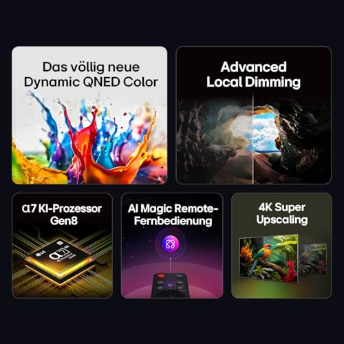 - 4K QNED AI TV mit Dynamic QNED Color-Display mit LED-Backlight und Advanced Local Dimming für reinste Farben