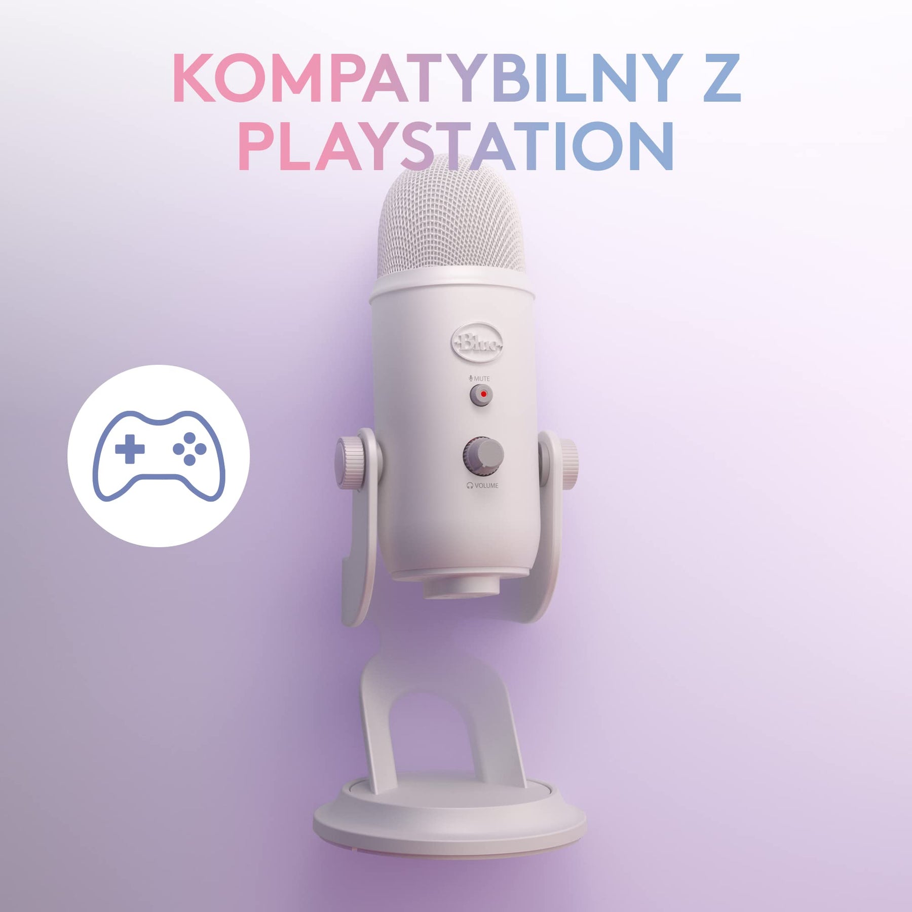 Blue Yeti USB Mic Yeti is a premium USB condenser microphone, producing clear, powerful, broadcast-quality sound for music, podcasts, Twitch streaming, YouTube videos, and Zoom calls. With advanced Blue VO!CE* software, Yeti makes it easier than ever to achieve professional on-stream sound quality with enhanced broadcast vocal effects, advanced voice modulation and HD audio samples. Four pickup patterns offer incredible flexibility, allowing you to record and stream in ways that would normally require multiple microphones. Yeti also features studio controls for headphone volume, pattern selection, instant mute and microphone gain that put you in charge of the recording process. Set up your recording studio in seconds with the included desktop stand or connect directly to a mic stand or boom arm. *Requires download and installation of Logitech G HUB Product details: Weight (microphone): 0.55 kg Weight (stand): 1 kg Dimensions (extended in stand): 12 x 12.5 x 29.5 cm Capsules: 3 Blue-proprietary 14 mm condenser capsules Polar patterns: Cardioid, bidirectional, omnidirectional, stereo Frequency response: 20 Hz - 20 kHz Sensitivity: 4.5mV/Pa (1 kHz) Platform compatibility: YouTube, Twitch, XSplit, Discord, Skype, GoToMeeting, Soundcloud, OvrStream, Audacity, iMovie, Pro Tools, GarageBand System requirements: Windows 10 or higher, macOS 10.13 or later, USB 1.1/2.0/3.0 Package contents: Yeti USB mic with desktop stand, USB cable