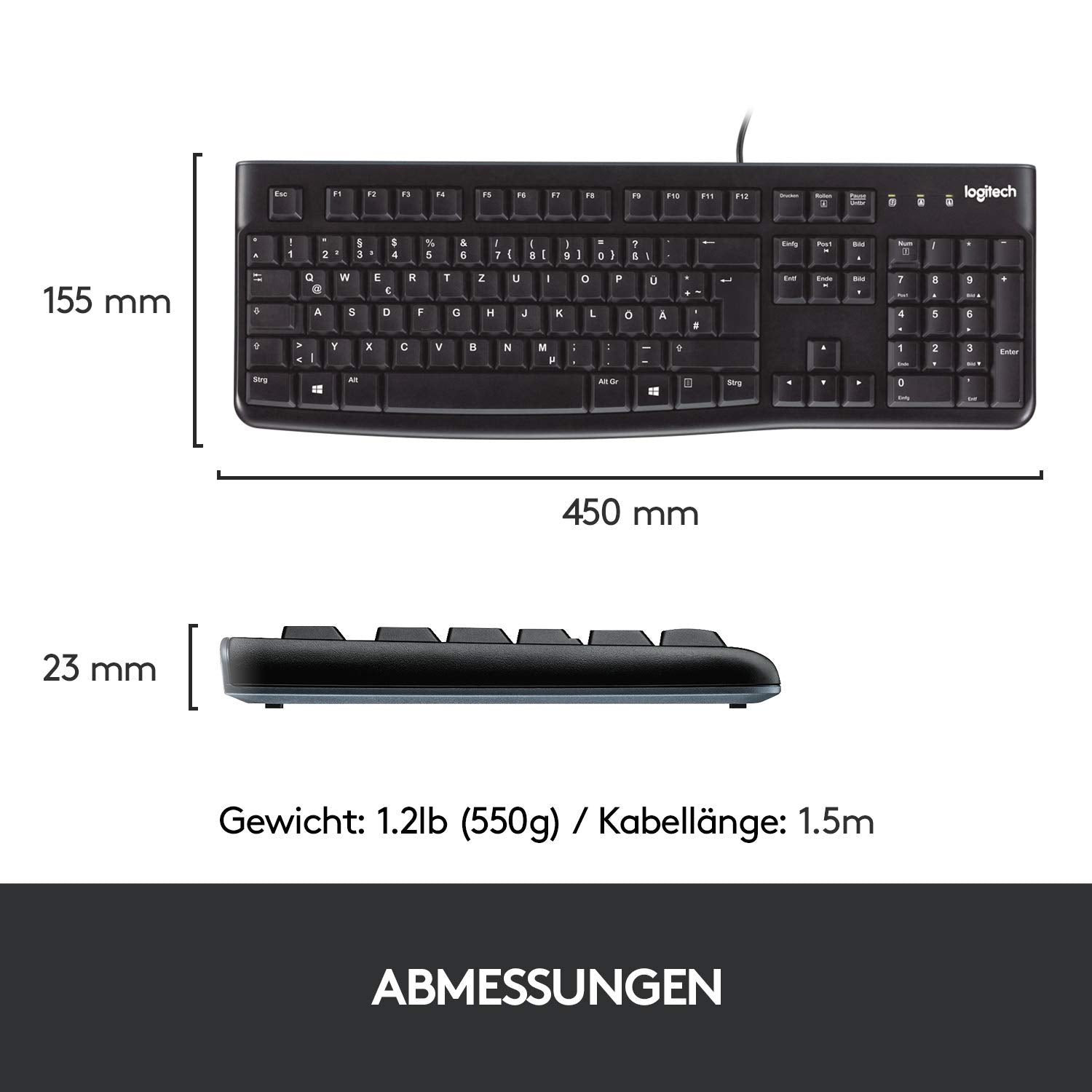 - Langlebiges Design: Das schmale Profil, spritzwassergeschützte Design, die robusten Tasten und einstellbaren Tastaturaufsteller, machen die K120 zur idealen Büro-Tastatur