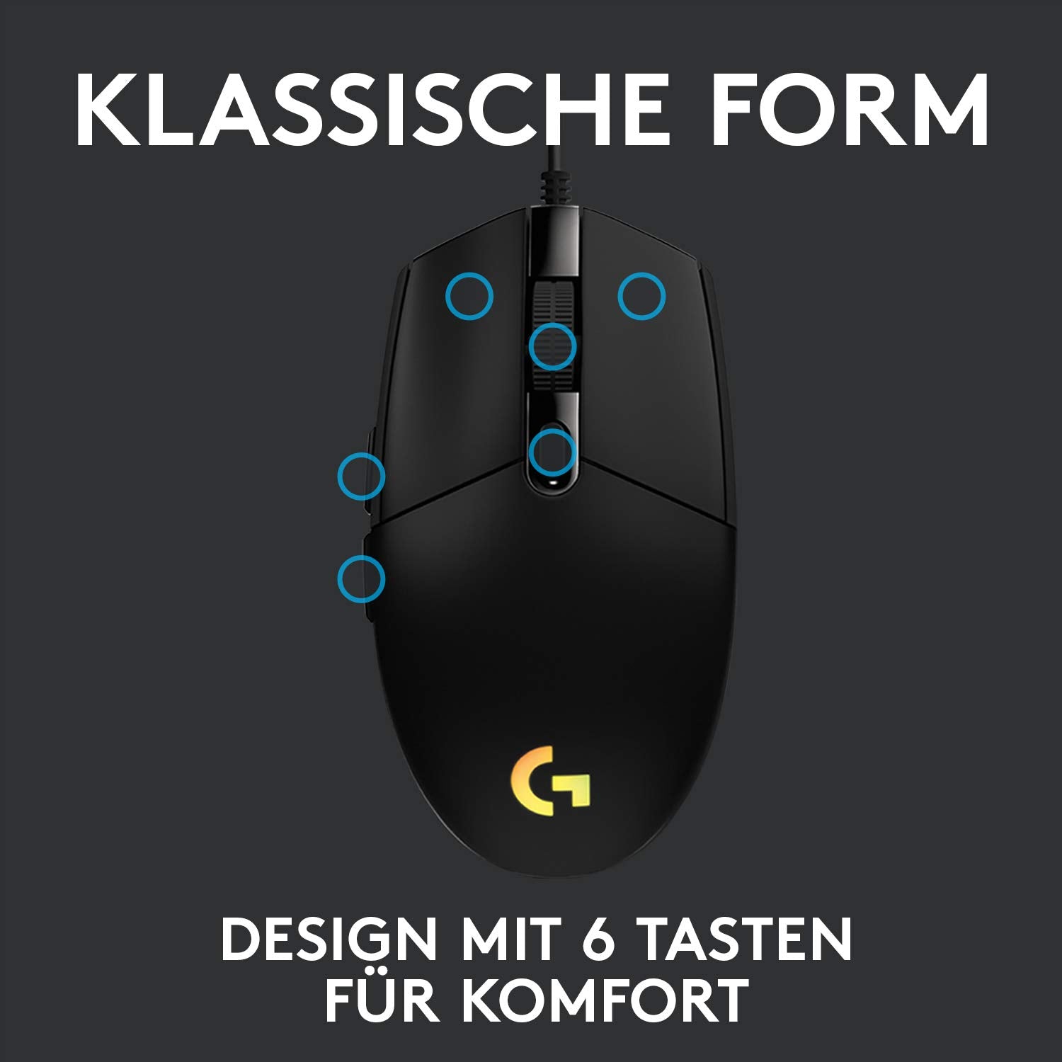 - Klassisches, von Gamern getestetes Design: Spiele komfortabel, wobei du die volle Kontrolle hast. Das einfache Layout mit 6 Tasten und die klassische Gaming-Form ergeben ein komfortables, bewährtes und beliebtes Design. Jede Taste kann mit Logitech G HUB angepasst werden, damit Aufgaben leichter ablaufen.