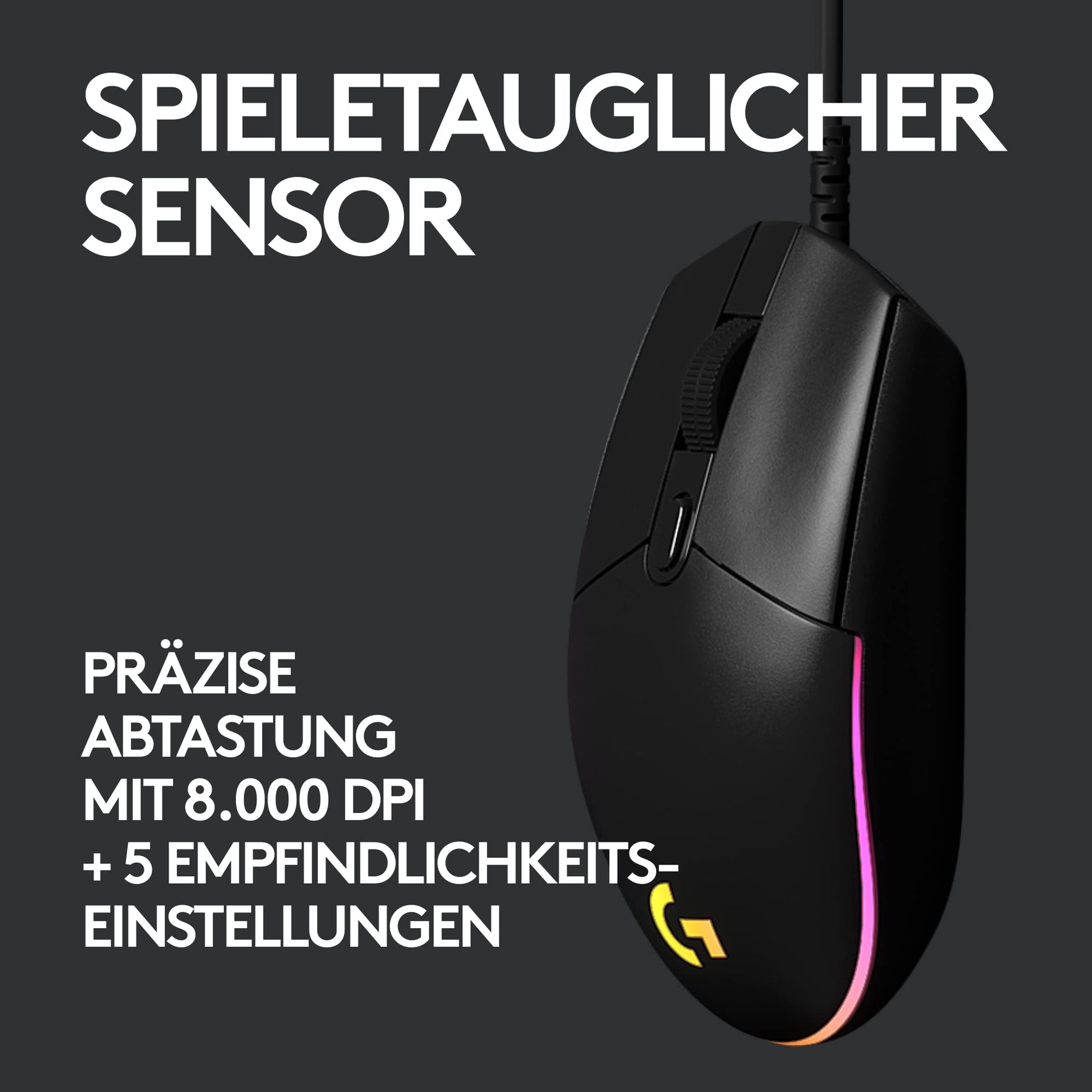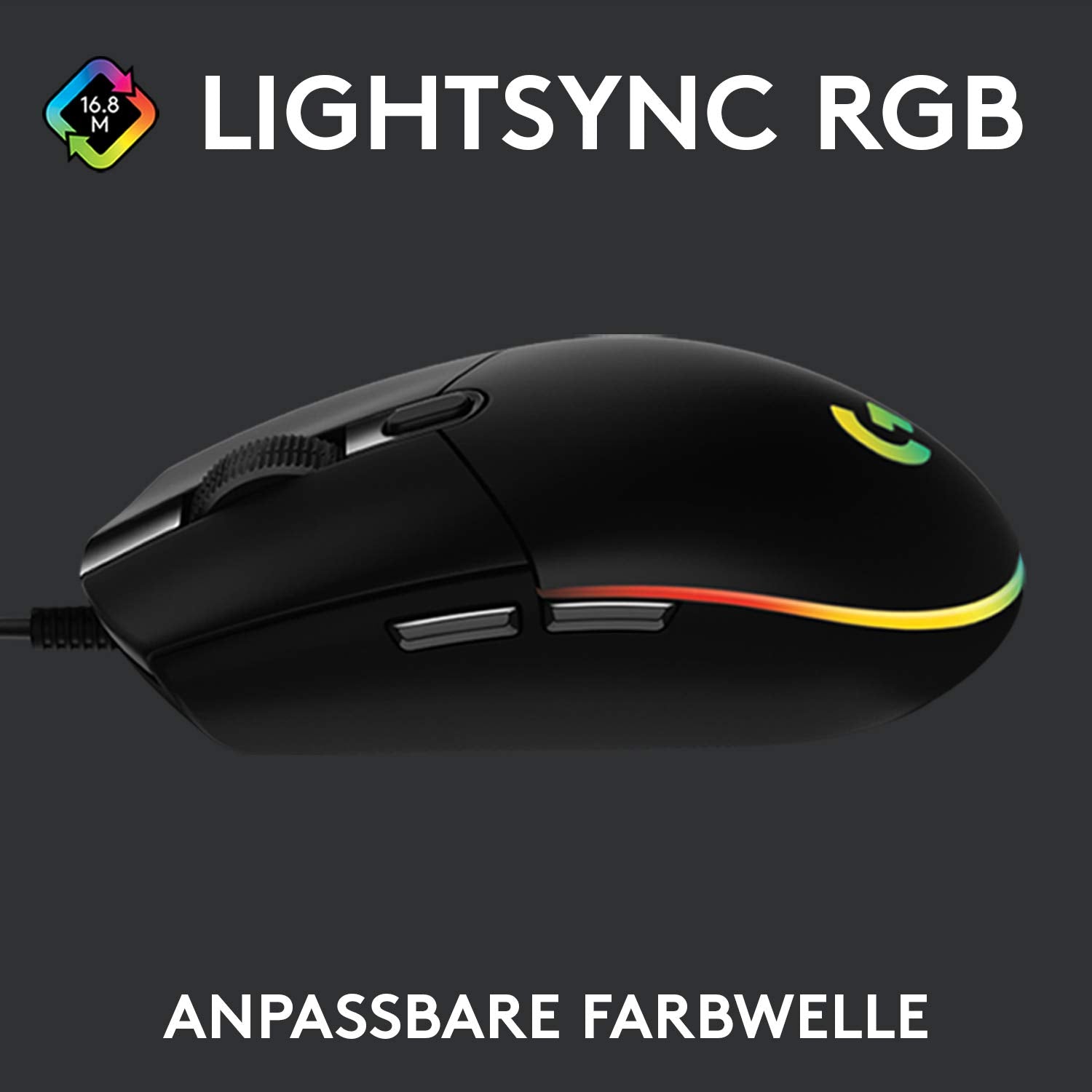G203 LIGHTSYNC ist einsatzbereit mit einem 8.000-DPI-Sensor und anpassbaren LIGHTSYNC-RGB-Farben. LIGHTSYNC RGB lässt sich mit farbigen Welleneffekten oder Mustern in ~16,8 Millionen Farben passend für deinen Spielstil, dein Setup und deine Laune personalisieren. Der spieletaugliche Sensor reagiert präzise auf deine Bewegungen und du kannst die Empfindlichkeit ganz nach deinen Wünschen einstellen.* Das einfache Layout mit 6 Tasten und die klassische Gaming-Form ergeben ein komfortables, bewährtes und beliebtes Design. Die Tasten lassen sich anpassen, um bestimmte Aufgaben zu vereinfachen. Die primären Tasten sind mechanisch und mit strapazierfähigen Metallfedern gespannt, um Zuverlässigkeit, Leistung und ein hervorragendes Gefühl zu gewährleisten. *Erweiterte Funktionen erfordern die Logitech G HUB Gaming-Software, verfügbar auf logitechG.com/GHUB.