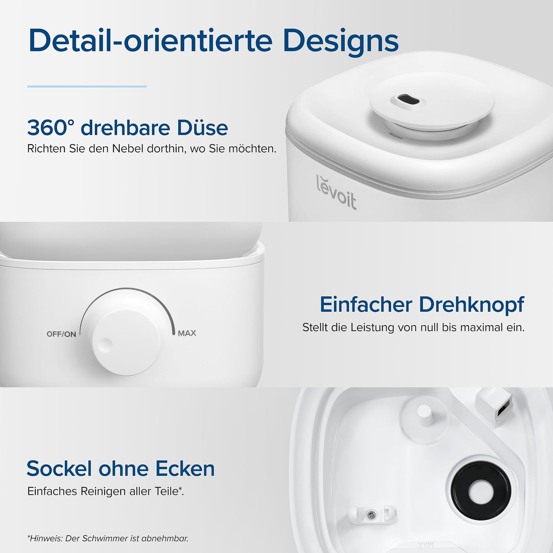 Einzelheiten: LEVOIT 2,5L Mini Luftbefeuchter bis 25H für Schlafzimmer Kinderzimmer, 26dB leise Top-Fill Humidifier für Baby Pflanzen, Raumbefeuchter mit 360° drehbarer Düse, automatische Abschaltung