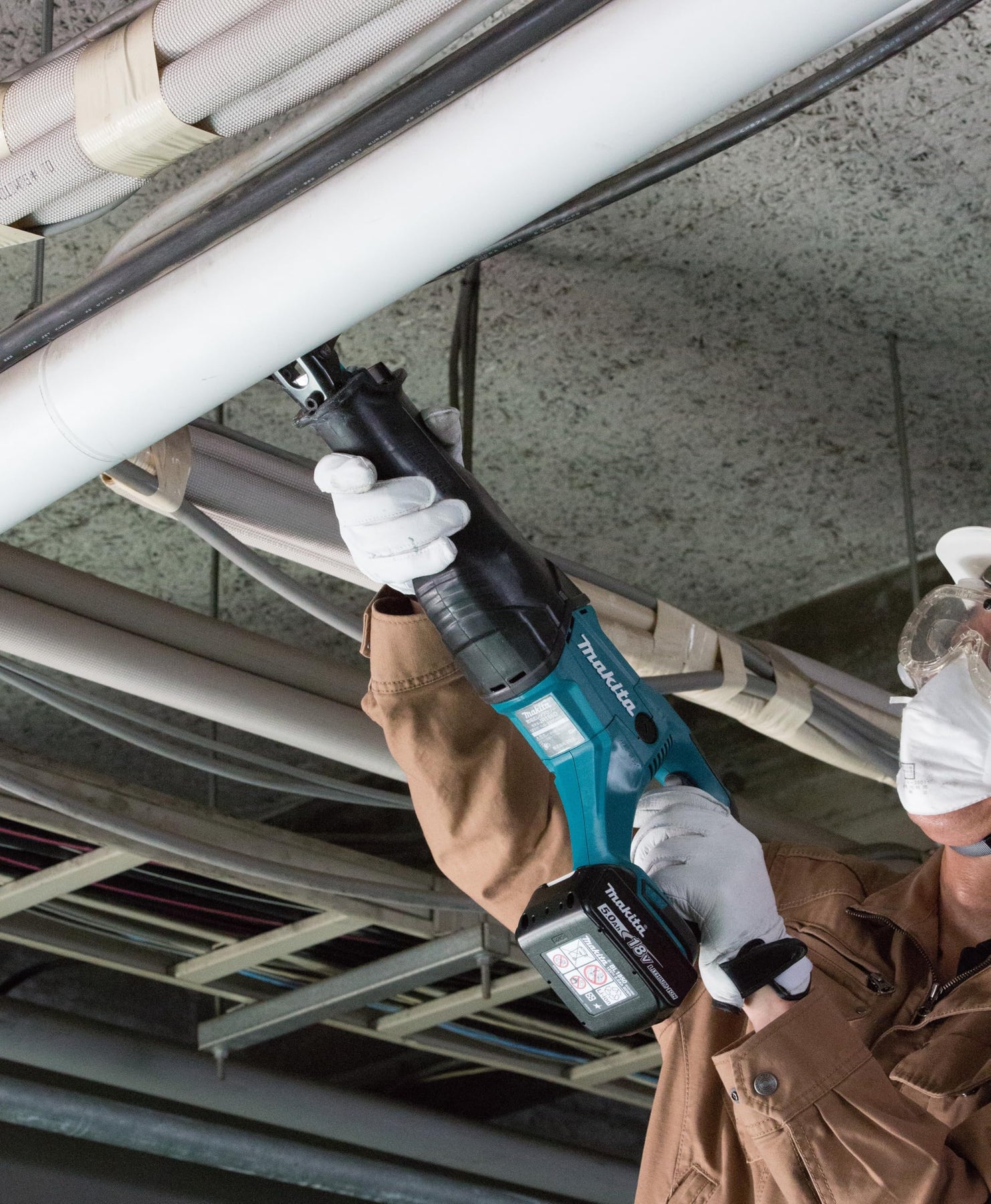 Einzelheiten: Leistungsfähige solide Reciprosäge mit großer Hubhöhe. Eine leistungsfähige Reciprosäge, geeignet für funkenfreies und spurstabiles Trennen von Metall, Holz und für Abrissarbeiten. Sehr schneller Sägefortschritt durch große Hubhöhe von 32 mm. Die Leerlaufhubzahl ist einstellbar von 0 bis 2.800min-1. Mit werkzeuglosem Sägeblattwechsel; Spezifikationen: Tiefentladeschutz. Das Gerät schaltet automatisch ab, wenn der Akku fast leer ist; Sehr schneller Sägefortschritt; Effektiver Staubschutz verhindert das Eindringen von Staub und Schmutz; Werkzeugloser Sägeblattwechsel; Vertikal angeordneter Kurbelmechanismus, dadurch schnellere Rückwärtsbewegung der Hubstange; Schneller und spurstabiler Schnitt durch vertikal ausgerichtete Schwungmasse und einen größeren Hub von 32 mm; Verstärkter Führungsschuh (fest eingestellt); Technische Details: Akkuspannung 18 V; Leerlaufschlagzahl 0-2.800 min-¹; Hubhöhe 32 mm; Max. Schnittleistung Holz 90° 255 mm; Max. Schnittleistung Rohr 130 mm; Schallleistungspegel (LWA) 95 dB(A); Schalldruckpegel (LpA) 84 dB(A); K-Wert Geräusch 3 dB(A); Vibration 13 m/s²; K-Wert Vibration 1,5 m/s²; Produktabmessung (L x B x H) 486x81x223 mm