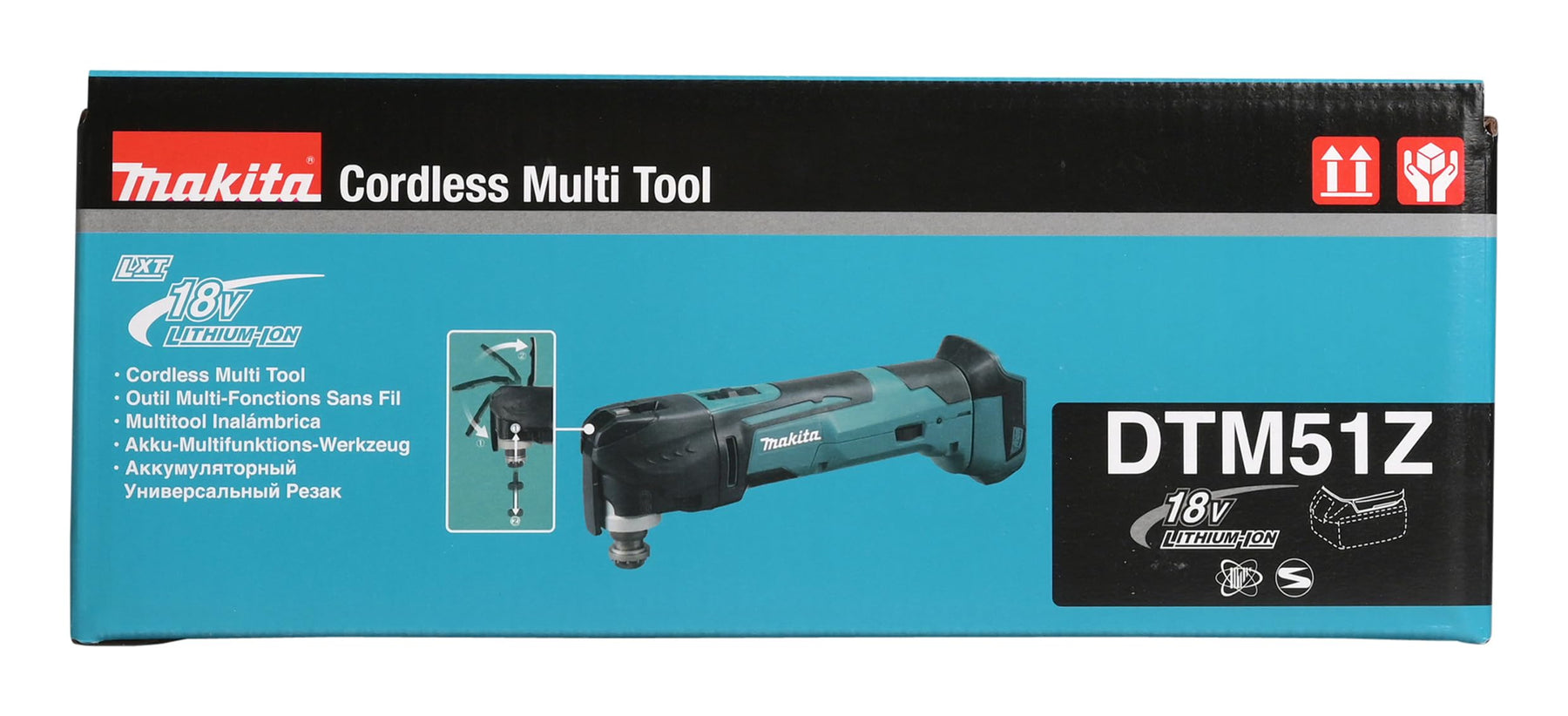 Einzelheiten: Multitool zum Sägen und Polieren, zur Beseitigung von Fugenresten und für viele andere Anwendungen. Ein handliches 18 V Multifunktionswerkzeug für eine Vielzahl an Säge- und Polieranwendungen bei Bau-und Renovierungsvorhaben. Ausgestattet mit einem werkzeuglosen Wechsel der Einsatzwerkzeuge. Die Oszillation kann zwischen 6.000 und 20.000 min-1 eingestellt werden; Spezifikationen: Ummantelter Handgriff sorgt für sicheren Halt und angenehmes Greifgefühl; Lieferung im Karton ohne Akku, ohne Ladegerät, ohne Koffer; Werkzeugloser Wechsel der Einsatzwerkzeuge; Multifunktionswerkzeug zum Sägen, Schneiden und Schleifen; Umfangreiches Zubehör für ein breites Anwendungsspektrum optional lieferbar; Elektronisch regelbare Oszillations-Zahl; Mit Sanftanlauf und Wiederanlaufschutz; Technische Details: Akkusystem LXT; Akkuschutzsystem; Leerlauf-Oszillation 6000 - 20000 min-¹; Oszillationswinkel 2 x 1,6 °; Schleiffläche (Dreieck) 93 x 93 x 93 mm; Schalldruckpegel (LpA) 81 dB(A); K-Wert Geräusch 3 dB(A); Vibration Sägen Holz 7.0 m/s²; Vibration Schleifen 3.0 m/s²; K-Wert Vibration 1.5 m/s²; Gewicht inkl. Akku (EPTA) 2,0 - 2,4 kg; Produktabmessung (L x B x H) 340x80x122 mm