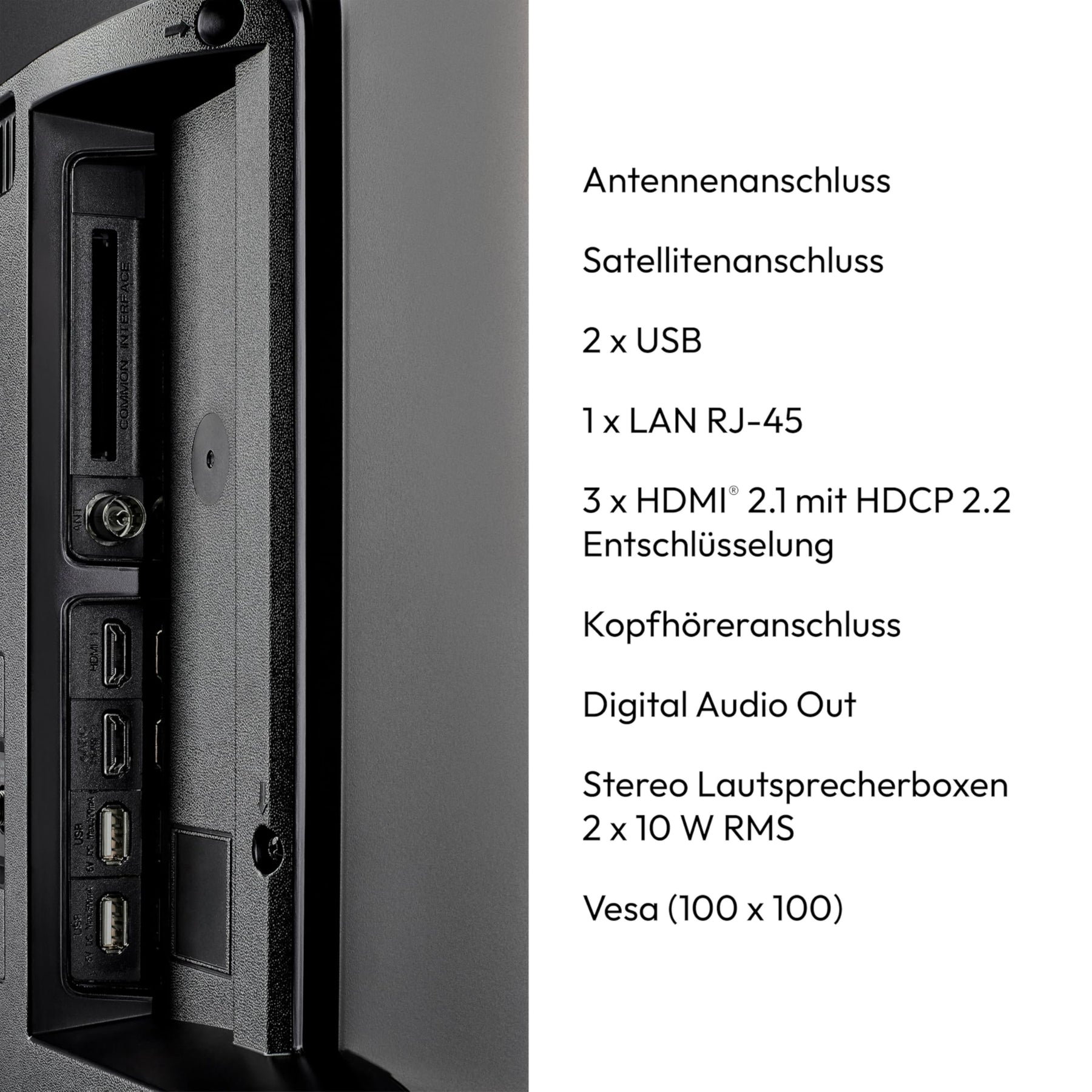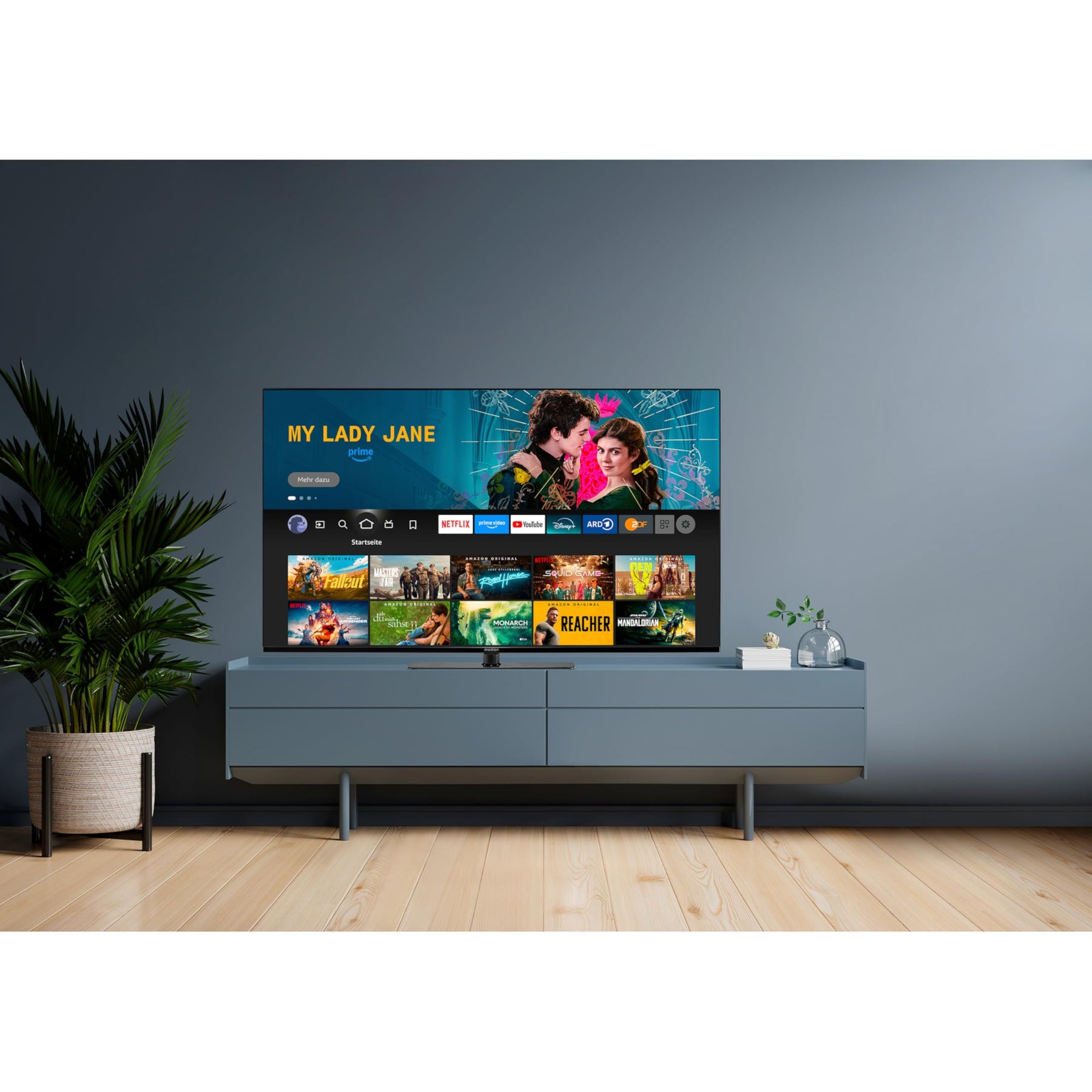 - Eleganter UHD Fire TV mit HDR10, Dolby Vision, Dolby Atmos, Micro Dimming, MEMC, CI+ Schnittstelle, WLAN, Bluetooth, Mediaplayer, HbbTV, Netflix, Amazon Prime Video und weiteren Smart-TV-Diensten.