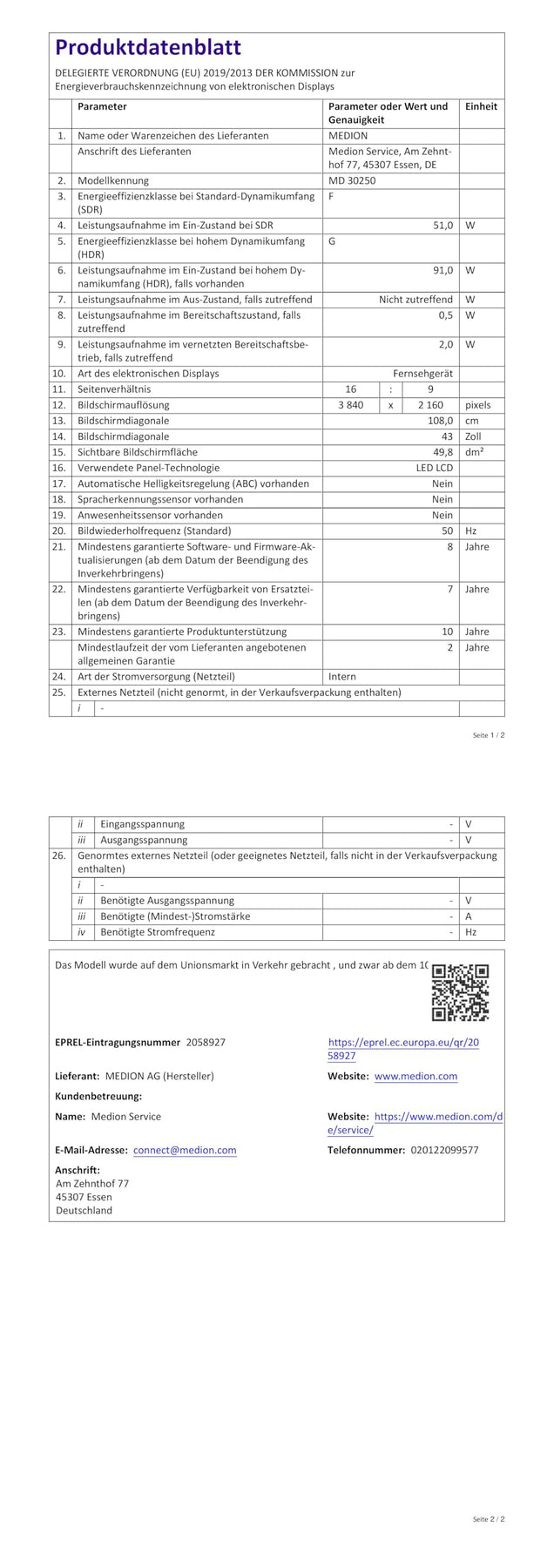 - Lieferumfang: Smart-TV X14331 MD30250 Standfuß inkl. Schrauben, Fire TV Fernbedienung inkl. Batterien (AAA), Quickstartguide.