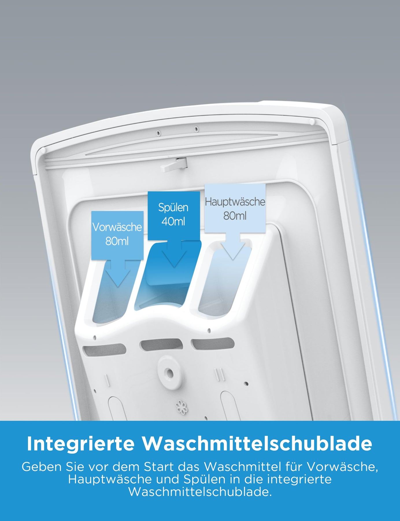 - Exzellente Reinigungsleistung: Durch einen leistungsstarken Wasserfluss, das Water Cube Trommelmuster und den Pebble-Pulsator können Flecken effektiv entfernt und die Stoffe gründlich gereinigt werden.
