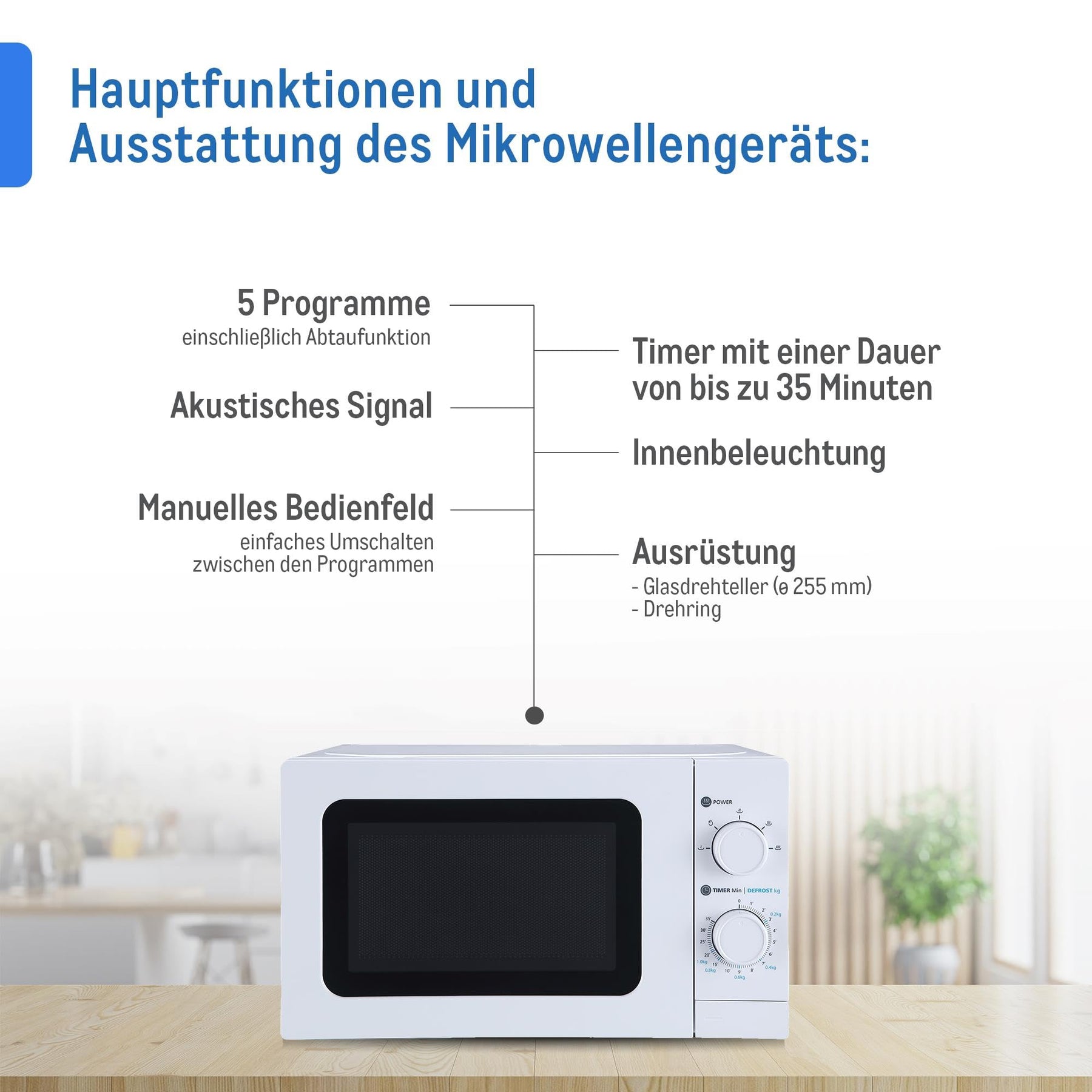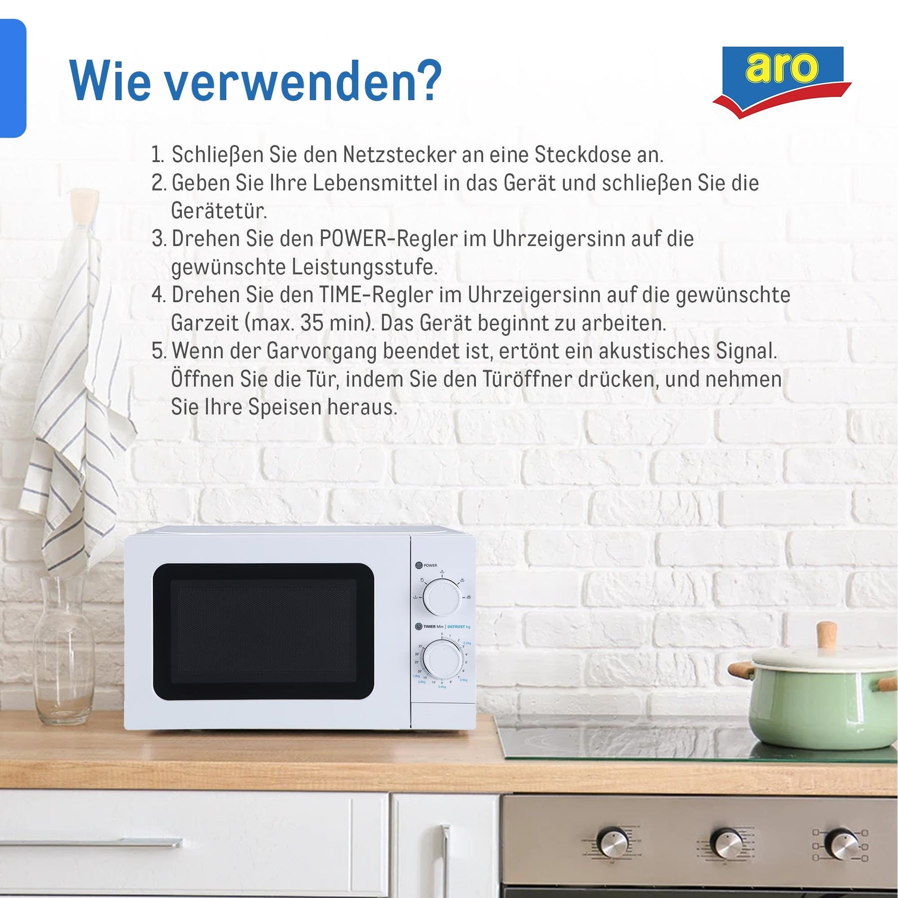 • Einfach und schnell: Unsere Mikrowelle verfügt über eine unkomplizierte und einfach zu bedienende Timer-Steuerung für bis zu 35 Minuten und eine helle Innenbeleuchtung, die die Benutzung der Mikrowelle bequem und schnell macht.