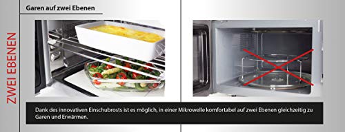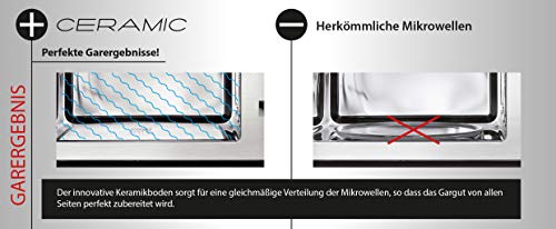 • 🍕 LEISTUNGSSTARK - Die Mikrowelle besitzt 800 W und der Grill 1000 W. Dank Keramikboden mit Mikrowellenreflektor wird eine gleichmäßige Verteilung und perfekte Zubereitung des Garguts ermöglicht.