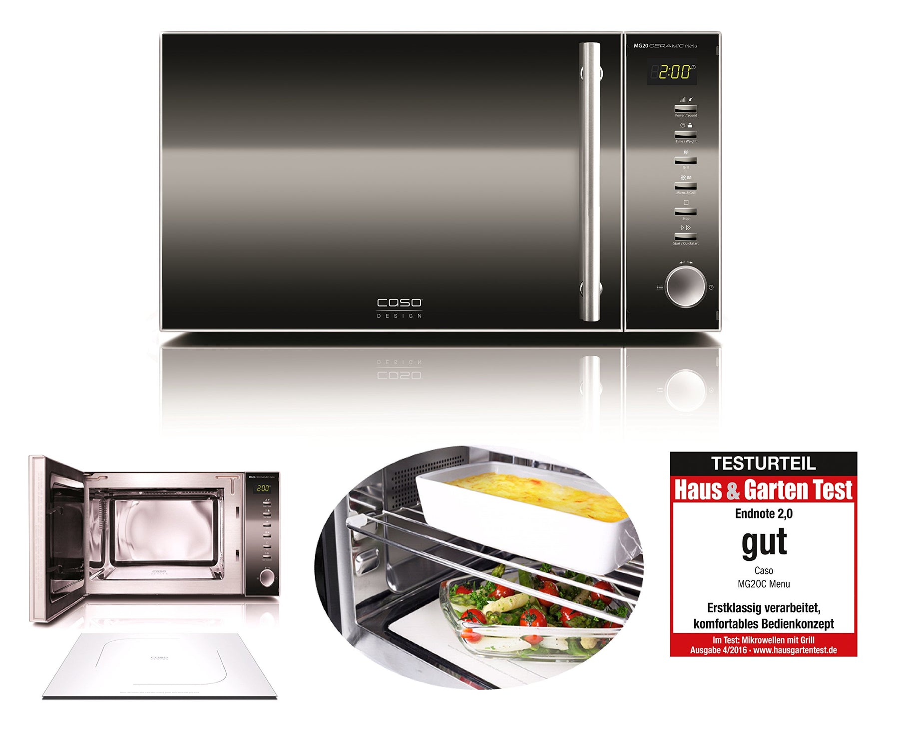 CASO | MG20 Ceramic menu 2-in-1 Mikrowelle mit Grill | Keramikboden und Grill-Rost für 2 Ebenen, 900 W, 1000 W Grill, 20 L, Edelstahl, verspiegelt