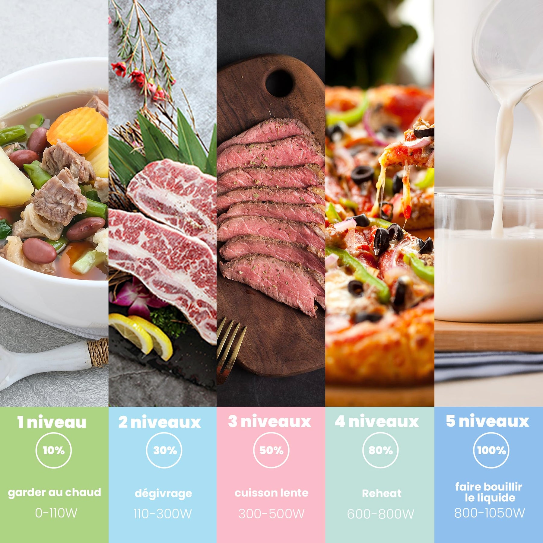 - Microwellengerät retro 5 Leistungsstufen: Fünf verschiedene Leistungsstufen ermöglichen maximale Flexibilität beim Kochen: vom Auftauen über das