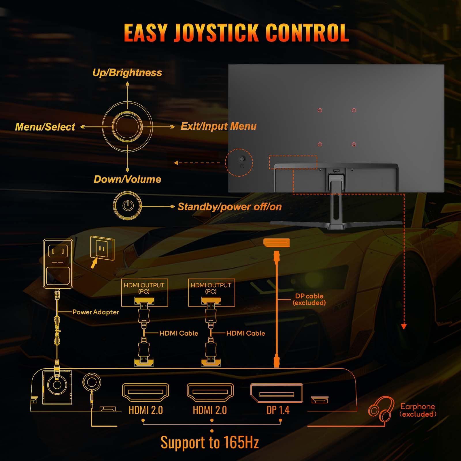 • Anschlüsse: 1 x DP 1.4 und 2 x HDMI 2.0 (HDMI-Kabel x 1 im Lieferumfang enthalten) – Audio-Buchse (keine integrierten Lautsprecher)