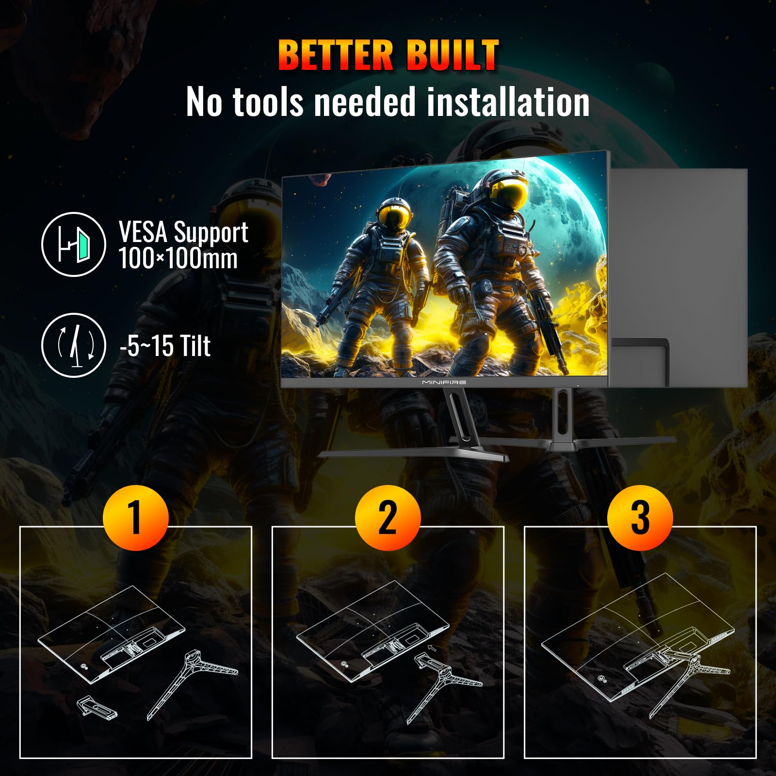 • Ergonomische Neigung: -5° bis 15°, 178° V/H-Betrachtungswinkel, flimmerfrei, 75 x 75 mm VESA