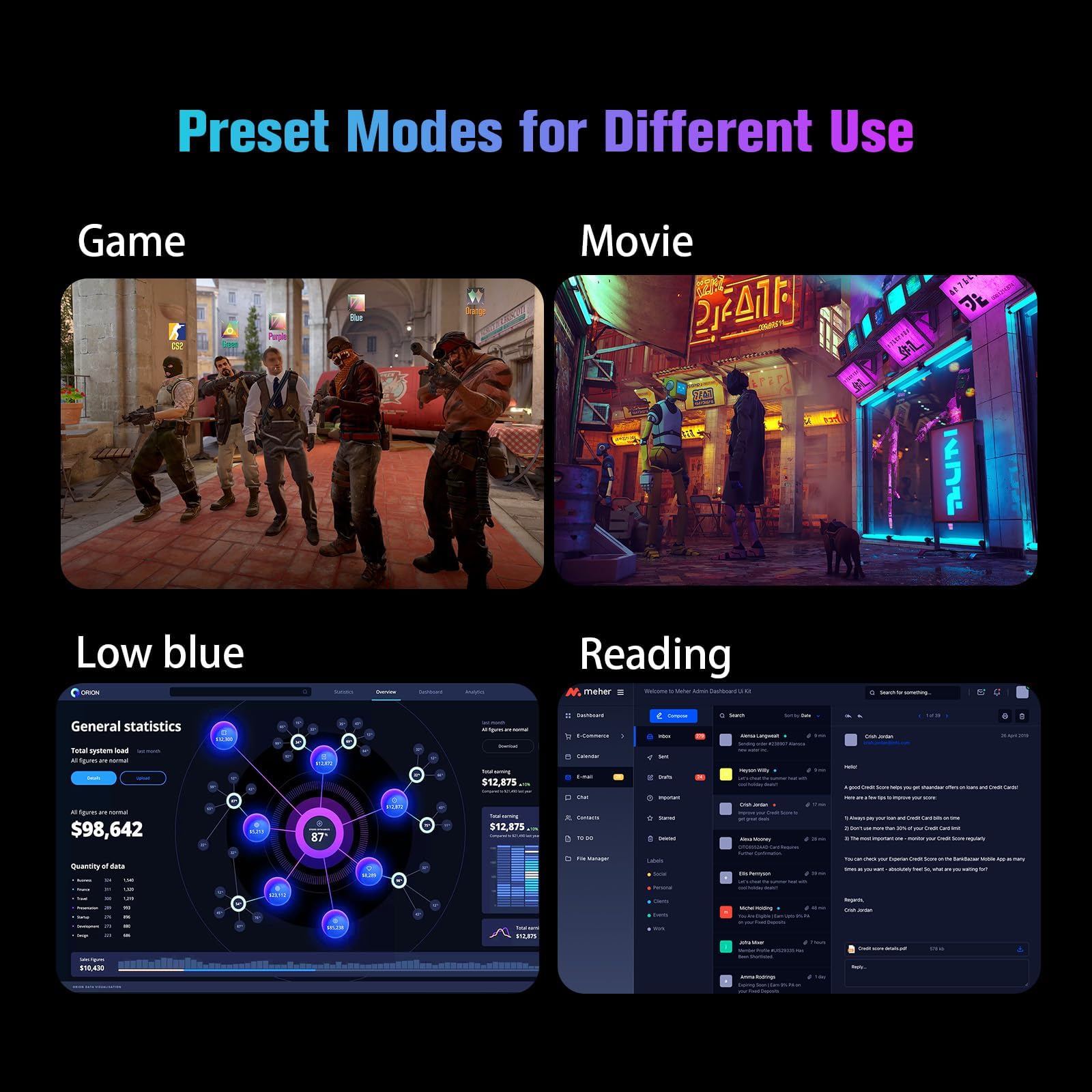 - Ergonomisches Design: V-förmiger 'Saved Room' Metallständer, Neigung von -5° bis 15°, Betrachtungswinkel von 178° horizontal und vertikal; Low Blue Light, HDR und Anti-Flicker-Technologie mit zwei Lautsprechern.