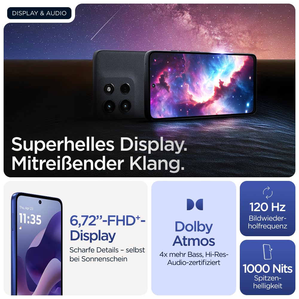 • Brillantes Display, beeindruckender Sound, Erleben Sie Ihr Entertainment auf dem gestochen scharfen 6,72"-FHD+-Display mit leistungsstarken Stereo-Lautsprechern und Bass-Boost