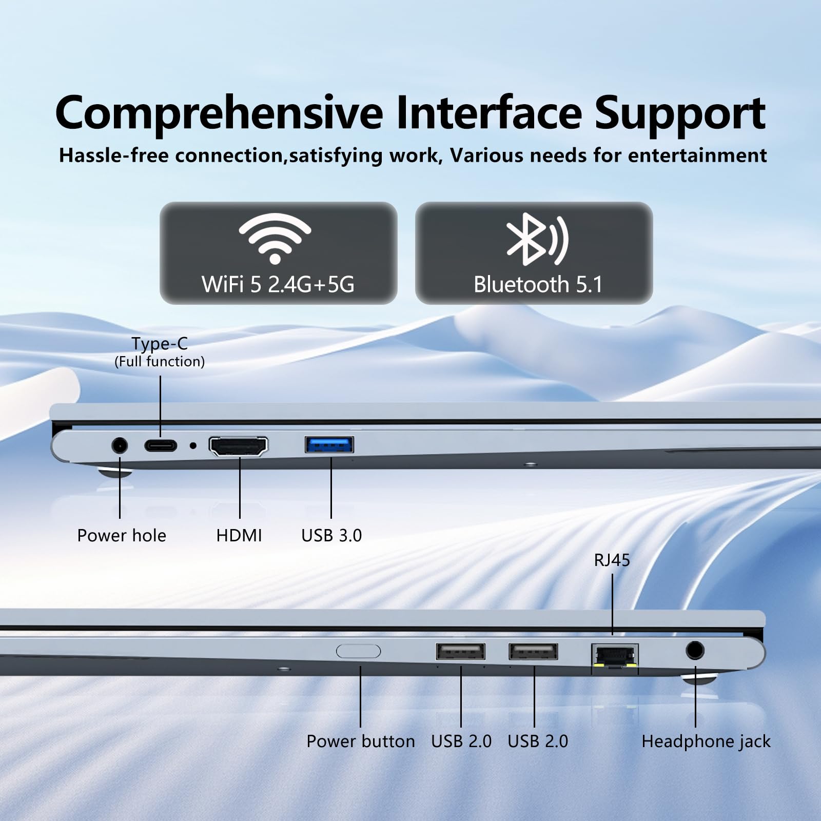 • 【Vielseitige Schnittstellen & Leichtgewicht】Dieser 2-in-1-Laptop verfügt über RJ45/Typ-C/USB 3.0/Mini HDMI/USB 2.0*2 und weitere Anschlüsse, um Ihnen eine Vielzahl von Anschlussmöglichkeiten für externe Geräte zu bieten. Gleichzeitig ist dieser Laptop mit einer hintergrundbeleuchteten Tastatur in voller Größe und einem großen Touchpad ausgestattet, das auch bei schlechten Lichtverhältnissen präzise bedient werden kann. Der 15,6-Zoll-Laptop ist mit einem ultradünnen Gehäuse ausgestattet, um ein stilvolles und neuartiges Erscheinungsbild und hervorragende Mobilität zu gewährleisten. Der Laptop verfügt außerdem über WiFi5 und Bluetooth 5.1 sowie einen 5000-mAh-Akku und eine 100-W-HD-Webcam.
