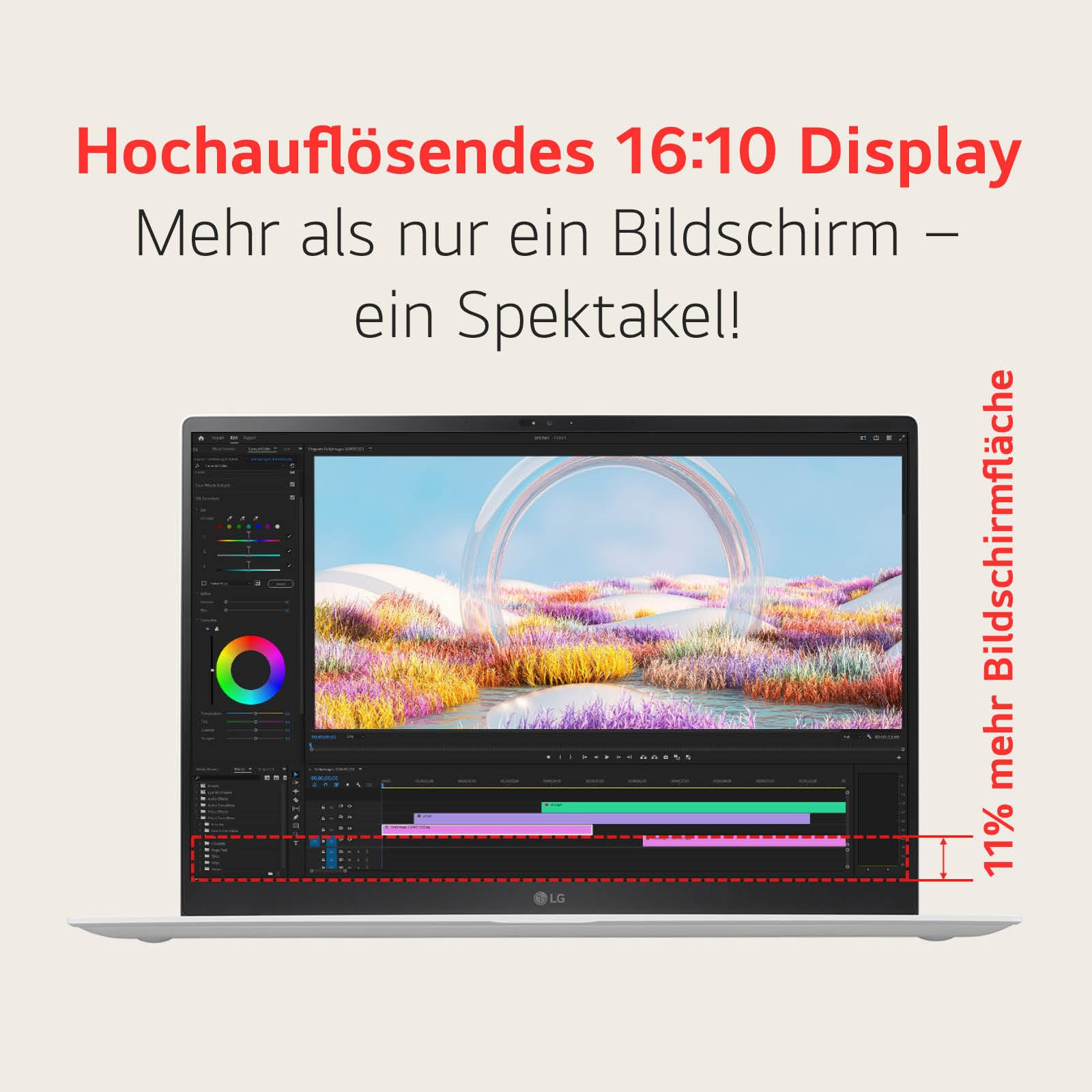 Einzelheiten: Das LG gram Pro macht Performance mobil. Auf seinem 16 Zoll großen OLED-Display mit sattem Kontrastverhältnis kommen Inhalte brillant zur Geltung. Die nötige Leistung für maximale Produktivität und beste Unterhaltung liefert die Kombination aus einem aktuellen Intel® Core™ Ultra 7 Prozessor und einer NVIDIA GeForce RTX™ 3050 Grafikkarte. Das brillante OLED-Display sorgt für eine farbstarke Darstellung mit 100% DCI-P3, einer Helligkeit von 400 cd/m2 und nativer WQXGA+ Auflösung (2.880 x 1.800 Pixel). Der Clou: Die starke Leistung trägt nicht dick auf, sondern ist durch seinen besonders schmalen Formfaktor und einem Gewicht von lediglich 1.279 Gramm besonders mobil. Das widerstandsfähige Gehäuse aus einer speziellen Magnesiumlegierung sorgt dabei auch unterwegs für eine lange Haltbarkeit.