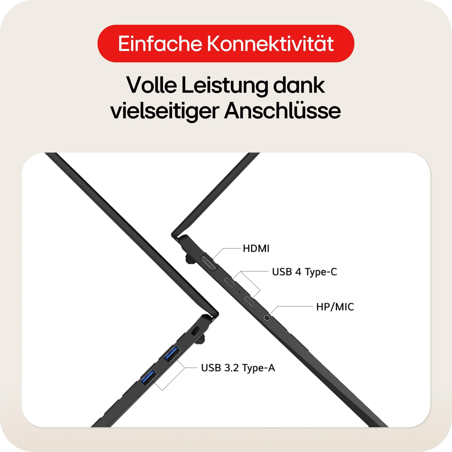 Einzelheiten: Der leistungsstarke AMD Ryzen AI 7 350 Prozessor mit integrierter GPU sorgt im Zusammenspiel mit 16 GByte LPDDR5X Arbeitsspeicher für eine rasante Performance, die durch das brillante IPS-Display perfekt ergänzt wird. Sämtliche Inhalte werden mit 99% sRGB, 350 cd/m² Helligkeit und in nativer Full-HD-Auflösung (1.920 x 1.080 Pixel) farbstark und präzise dargestellt. Zur Komplettausstattung des LG gram gehören außerdem eine vollwertige Tastatur mit Ziffernblock, die Integration von Full-HD-Webcam sowie Mikrofon, Bluetooth 5.3 und ein starker Akku (72 Wh) für lange Betriebszeiten auch ohne Netzstrom. All das in einem schlanken Formfaktor mit einem Gewicht von nur 1.290 Gramm.