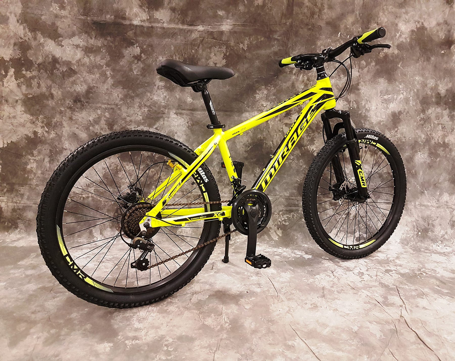 Einzelheiten: "MIRAGE" ein cooles Bike für die Leute von Heute 26" SUPER MOUNTAINBIKE ALU-RAHMEN 21- Gangschaltung & Scheibenbremsen in Gelb. Wir bieten Ihnen hier ein Gefedertes Markenmountainbike aus dem Hause Umit an. Dieses Mountainbike steht den großen Herrstellern in Nichts nach. Der Rahmen ist vollkommen alltagstauglich, hält aber auch stärkeren Beanspruchungen spielend stand. Durch die zusätzliche Gabelfederung werden auch stärkere Schläge problemlos abgefedert. Aufgrund der Daumenklickschaltung links und rechts am Lenker stehen 21-Gänge in jeder Situation zur Verfügung. Viele Markenkomponenten in Verbindung mit dem stabilen Rahmen sorgen für eine ausreichende Langlebigkeit. Dieses Mountainbike gehört wohl zu den coolsten sich am Markt befindlichen Fahrrädern dieser Preisklasse. TECHNISCHE DATEN, Rahmen: ALU, Größe: 26 Zoll, Rahmenhöhe: 45 cm, Gewicht: ca. 15kg, Schaltwerk: RD-TY300, 21 Gang, Zahnkranz: MF-TZ500, Schaltgriff: ST-EF41, Umwerfer: FD-TZ500 , Kettenradgarnitur: KMC Z33, Bremsen: Scheibenbremsen Mechanisch, Federung: Vorne, Gabel: Hi-Ten, gefedert, Felgen: Aluminium Hohlkammer, Reifen: 26" 26 x 2,10, Lenkerbügel: Aluminium, Vorbau: ALU, Seitenständer: Ja, Trinkflaschen: Nein, Licht oder Schutzbleche: NEIN, Die Endmontage ist wirklich für jeden möglich und sollte keinerlei Hinderniss darstellen. Bei Fragen stehen wir Ihnen gerne zu verfügung! UMIT BIKES überzeugen schon durch ihr cooles Design in Gelb WICHTIGE INFORMATIONEN Das Fahrrad wird zu 80 % vormontiert in eine Kartonage geliefert. Mit dem Ersteigern des Artikels erkennen Sie unsere allgemeinen Geschäftsbedingungen an. Bei vormontierten Fahrrädern erstreckt sich die Endmontage auch auf das Festziehen sämtlicher Schrauben und Muttern. Justierung der Schaltung und Bremsen, ggf. Einstellen der Kugellager und Zentrierung der Laufräder. Dies muss von Ihnen oder einem Fachmann vorgenommen werden. Bei Transportschäden bitte an uns wenden.