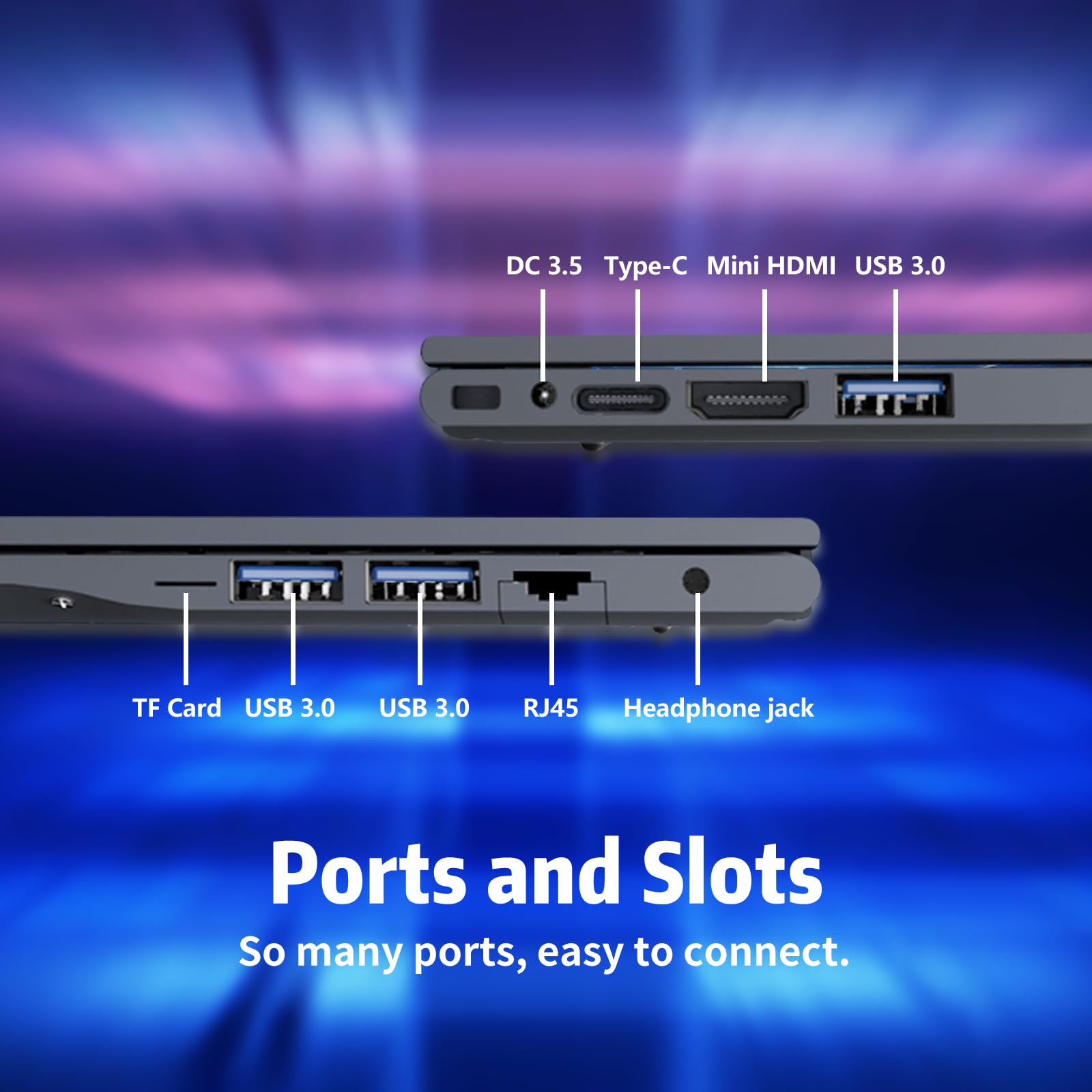 - Praktisches und tragbares Design: Dieses Notebook verfügt über ein ultradünnes Design, ein elegantes und neuartiges Aussehen und eine hervorragende Tragbarkeit. Sein schlanker 2 cm Körper und sein geringes Gewicht von 1,6 kg machen ihn ideal für den täglichen Gebrauch. Es ist mit einer Vielzahl von Schnittstellen ausgestattet: 3 x USB 3.0, 1 x Typ C (nur Daten), 1 x RJ45-Ethernet, 1 x Mini HDMI 1.4, 1 x Dual-Schnittstelle für Kopfhörer und Mikrofon, 1 x TF-Kartensteckplatz, Webcam, Wi-Fi 5 und Bluetooth 5.0. Bietet mehrere Schnittstellen und Multifunktionsübertragung, um Ihre verschiedenen Bedürfnisse zu erfüllen.