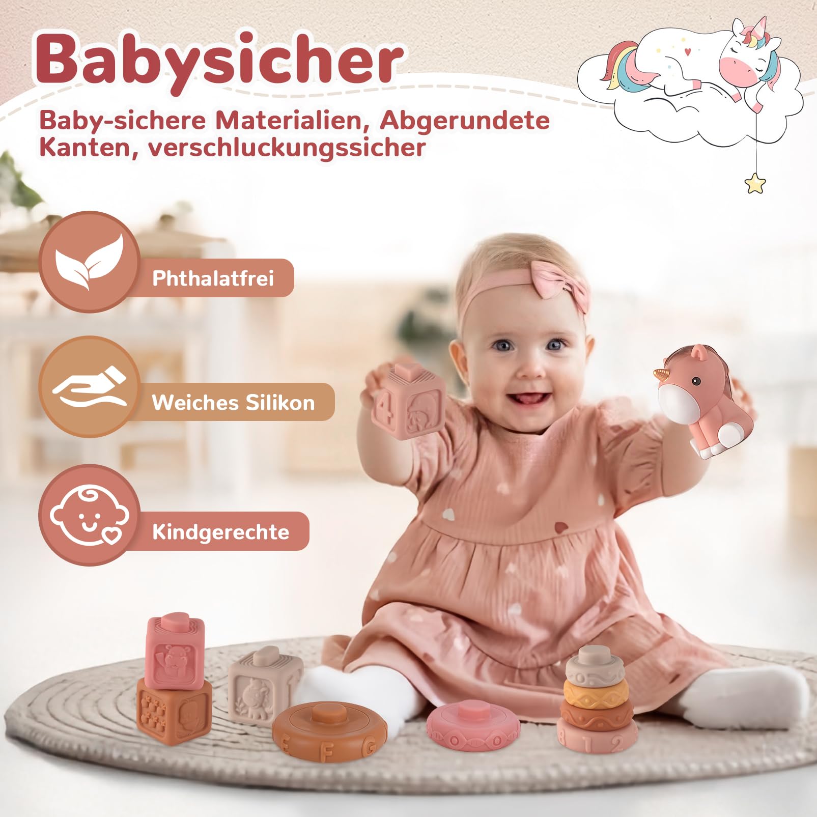- 🌳[Kinderfreundliches Design] - Alle babyspielzeug werden aus ungiftigen, hochwertigen Materialien hergestellt: lebensmittelechtem Silikon, premium ABS-Kunststoff und Massivholz. BPA-frei, sicher und schadstoffgeprüft. Pflegehinweise: Silikonspielzeug spülmaschinenfest (bis 60°C), Holzspielzeug stets trocken halten.