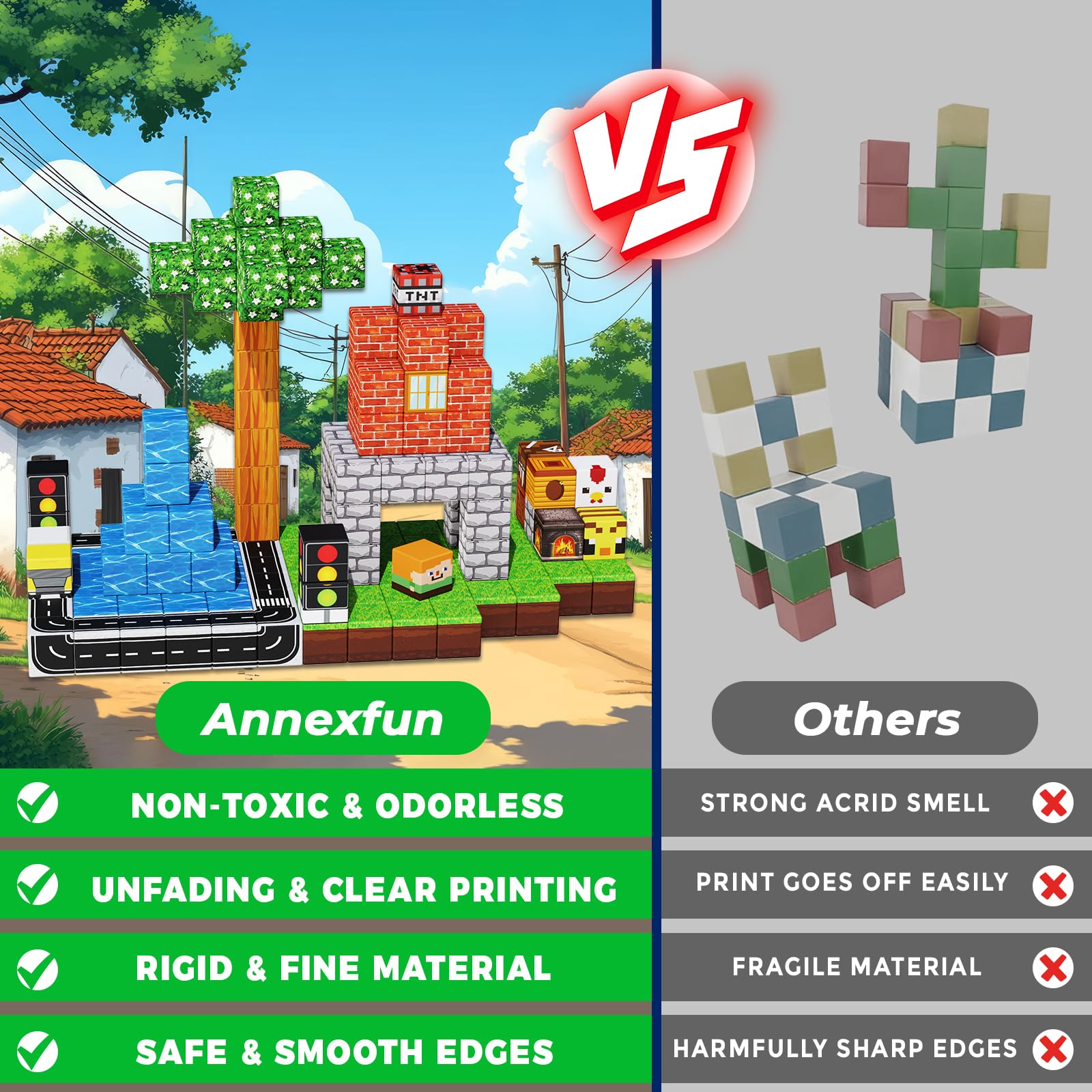 Annexfun Magnetische Bausteine 150pcs Magnetbausteine - Kücken Abenteuer Stadtleben mit Straße, Ampeln & Bienen | Lernspielzeug ab 4 Jahren | Kreatives Geschenk zu Weinachten