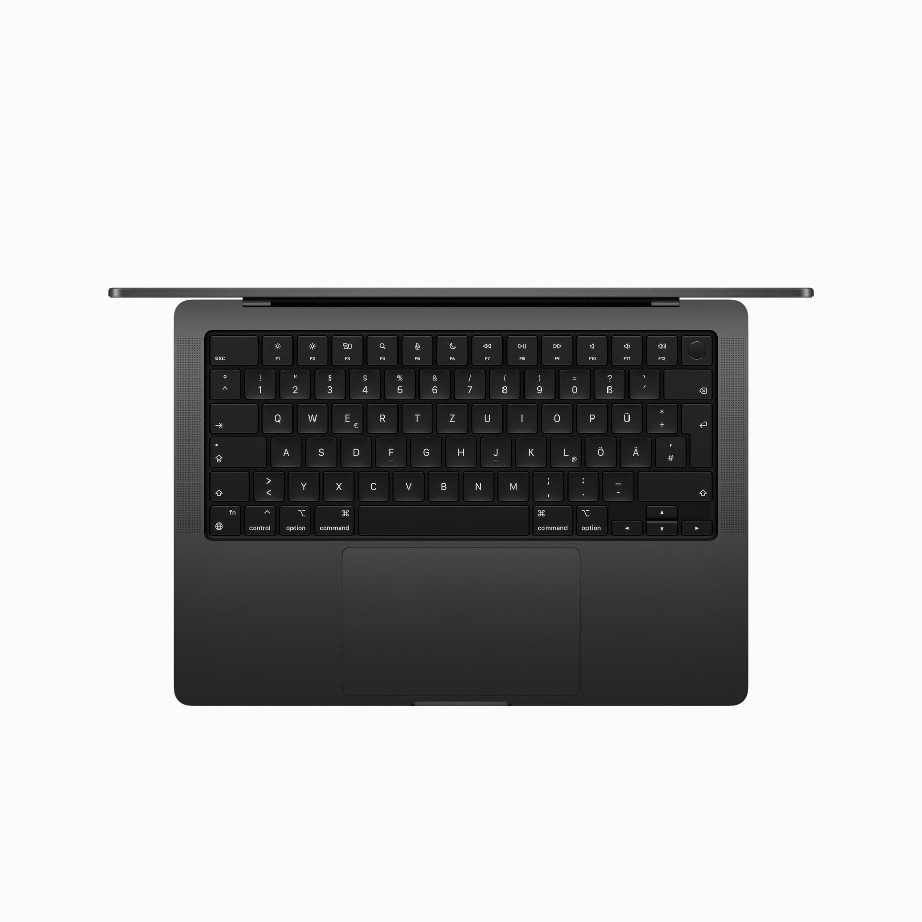 Einzelheiten: Das 14" MacBook Pro macht einen gigantischen Sprung mit den extrem fortschrittlichen M3 Pro und M3 Max Chips, die noch mehr Performance für anspruchsvollere Workflows bringen. Mit der besten Batterielaufzeit seiner Klasse – bis zu 18 Stunden – und einem brillanten Liquid Retina XDR Display, ist es ein Pro Laptop wie kein anderer. Jetzt in einer neuen Farbe: Space Schwarz.