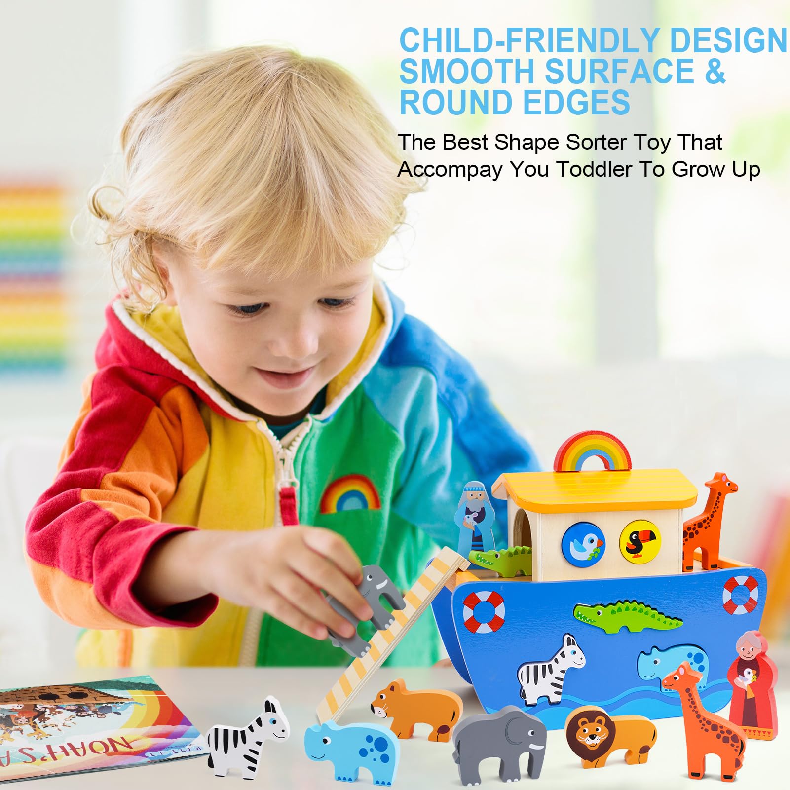 - 【Lernspielzeug】 Die Holzarche hat 6 Eingänge in Tierform, die nur die entsprechenden Tiere betreten können. Das Baby kann beim Spielen Farben erkennen und Formen kategorisieren, was Kreativität und Denkvermögen, Feinmotorik, Hand-Augen-Koordination und Problemlösung anregt.
